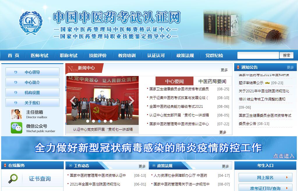| 網(wǎng)站簡介: 中國中醫(yī)藥考試認(rèn)證網(wǎng),國家中醫(yī)藥管理局中醫(yī)師資格認(rèn)證中心官方網(wǎng)站。 |