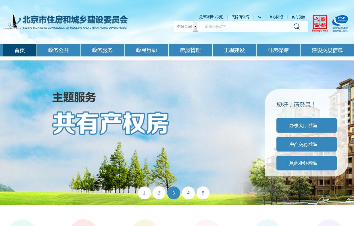 您當(dāng)前的位置:網(wǎng)站首頁 > 目錄主分類 > 社會(huì)教育 > 政府組織 > 地方政府網(wǎng)站 > 北京市住房和城鄉(xiāng)建設(shè)委員會(huì)