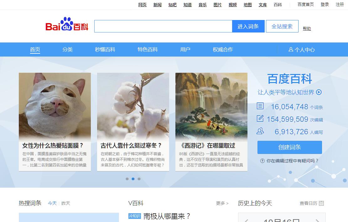 | 網(wǎng)站簡介: 百度百科是百度公司推出的一部內(nèi)容開放、自由的網(wǎng)絡百科全書平臺。其測試版于2006年4月20日上線,正式版在2008年4月21日發(fā)布,截至2018年2月,百度百科已經(jīng)收錄了超過1520萬詞條,參與詞條編輯的網(wǎng)友超過644萬人,幾乎涵蓋了所有已知的知識領域?!笆澜绾軓碗s,百度更懂你”,百度百科旨在創(chuàng)造一個涵蓋各領域知識的中文信息收集平臺。百度百科強調(diào)用戶的參與和奉獻精神,充分調(diào)動互聯(lián)網(wǎng)用戶的力量,匯聚上億用戶的頭腦智慧,積極進行交流和分享。同時,百度百科實現(xiàn)與百度搜索、百度知道的結(jié)合,從不同的層次上滿足用戶對信息的需求。百度百科是一部內(nèi)容開放、自由的網(wǎng)絡百科全書,旨在創(chuàng)造一個涵蓋所有領域知識,服務所有互聯(lián)網(wǎng)用戶的中文知識性百科全書。在這里你可以參與詞條編輯,分享貢獻你的知識。 |