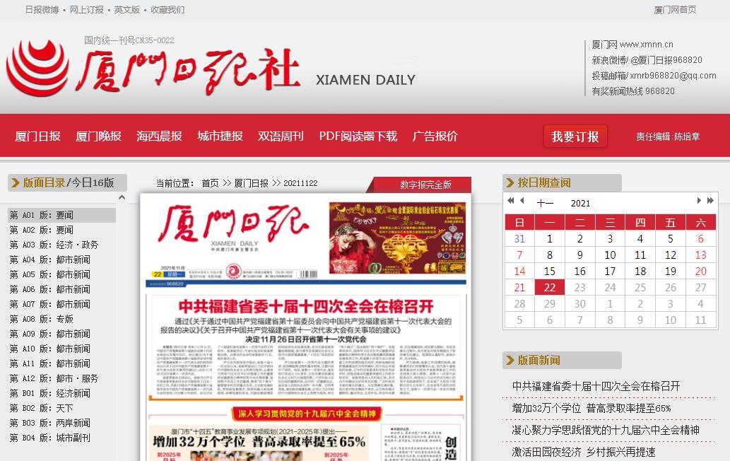 廈門日?qǐng)?bào)電子版,廈門日?qǐng)?bào)多媒體數(shù)字報(bào)。《廈門日?qǐng)?bào)》創(chuàng)刊于1949年10月22日。