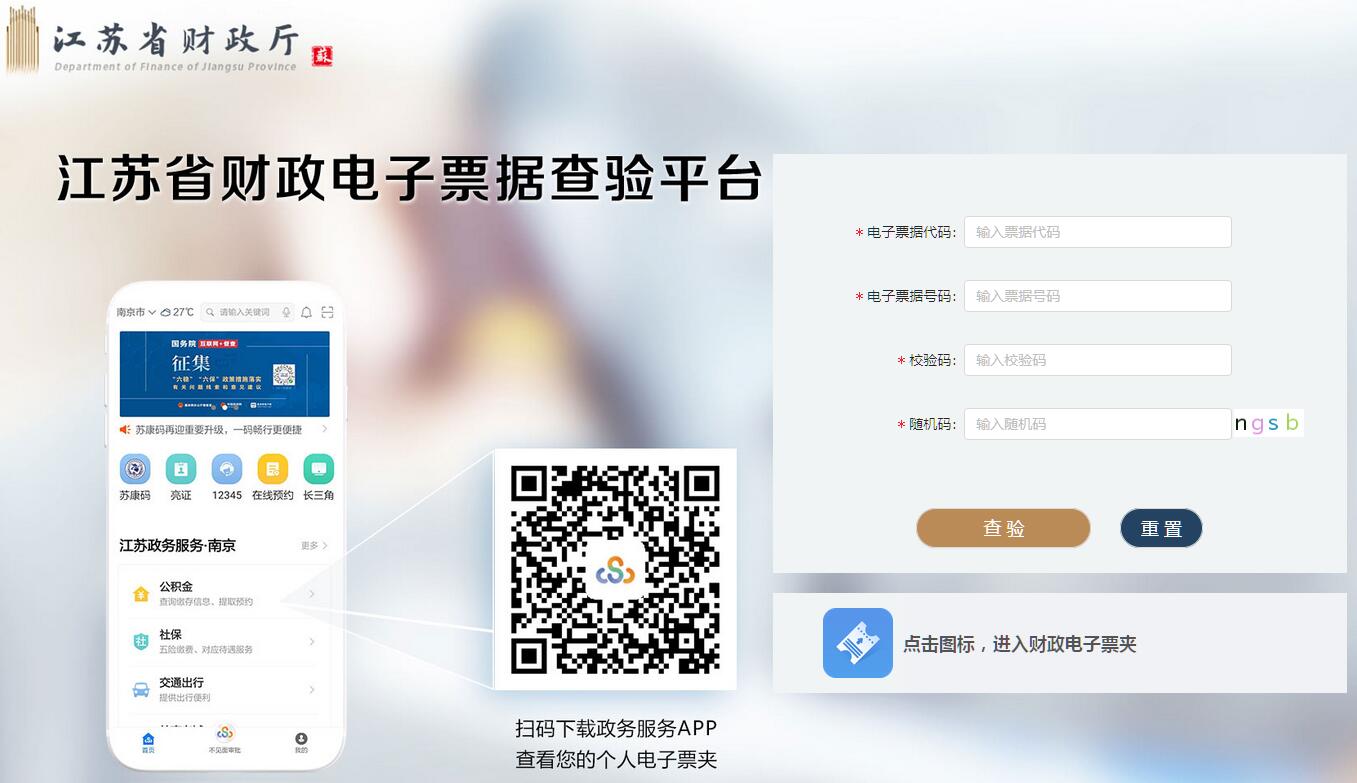 網(wǎng)站名稱: 江蘇省財政電子票據(jù)查驗