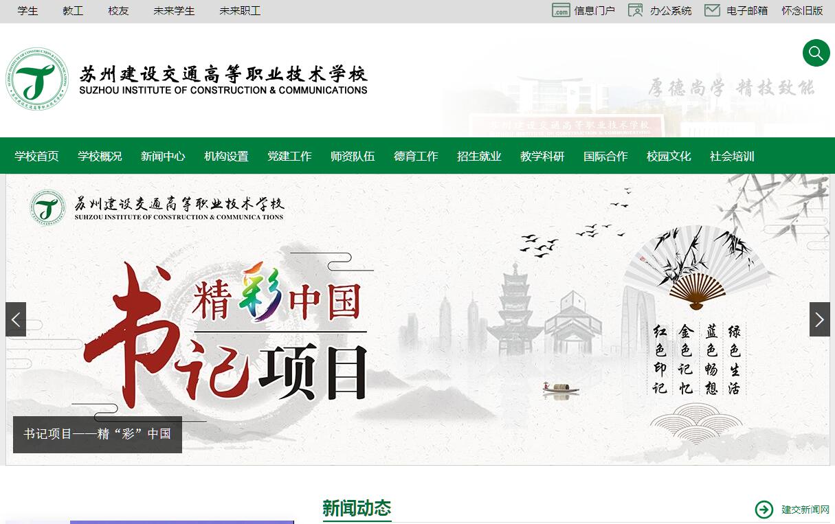 學(xué)校于2004年4月由蘇州市委市政府根據(jù)國務(wù)院、省政府關(guān)于大力推進(jìn)職業(yè)教育改革和發(fā)展的決定,按照《江蘇省高等職業(yè)技術(shù)學(xué)校(五年制)設(shè)置辦法》和《蘇州市市區(qū)職業(yè)教育布局結(jié)構(gòu)調(diào)整的總體方案》的要求,由五校合并組建而成,于2004年9月正式進(jìn)駐蘇州國際教育園。2005年2月,由江蘇省教育廳批準(zhǔn)建立高等職業(yè)技術(shù)學(xué)校,同時(shí)命名為江蘇聯(lián)合職業(yè)技術(shù)學(xué)院蘇州建設(shè)交通分院,以舉辦五年一貫制高職專業(yè)為主,培養(yǎng)建筑、交通和商貿(mào)類專業(yè)的高素質(zhì)勞動者和技術(shù)技能型人才。學(xué)?,F(xiàn)有兩個(gè)校區(qū),占地483畝,建筑面積14萬7千多平方米,建有建筑、交通、商貿(mào)三大類專業(yè)實(shí)訓(xùn)中心,實(shí)訓(xùn)基地建筑面積達(dá)3萬多平方米,現(xiàn)有專業(yè)教學(xué)實(shí)驗(yàn)實(shí)訓(xùn)設(shè)備7600余萬元。學(xué)校建筑、汽車實(shí)訓(xùn)基地均為省級高水平示范性實(shí)訓(xùn)基地建設(shè)項(xiàng)目和省級技能教學(xué)研究基地。學(xué)校設(shè)置了建筑工程系、工程管理系、環(huán)境藝術(shù)工程系、汽車工程系、軌道交通工程系和商貿(mào)管理系六個(gè)教學(xué)系和一個(gè)基礎(chǔ)教學(xué)部,在校學(xué)生6044人(其中五年制高職學(xué)生5427人),現(xiàn)有專兼職教師389人(生師比15.5:1),其中專任教師286人,專任專業(yè)教師225人(占專任教師78.6%),副高及以上職稱88人(占專任教師30.8%);具有碩士研究生以上學(xué)歷或?qū)W位的教師179人(占專任教師62.6%),在讀博士學(xué)位2人,在讀碩士學(xué)位39人;“雙師型”教師200人(占專任專業(yè)教師總數(shù)的88.9%)。同時(shí),學(xué)校還聘任了一批具有扎實(shí)理論功底和豐富實(shí)踐經(jīng)驗(yàn)的行業(yè)、企業(yè)專家和技術(shù)骨干擔(dān)任兼職專業(yè)教師。學(xué)校管理嚴(yán)格,重視學(xué)生綜合素質(zhì)教育,著重培養(yǎng)學(xué)生的動手能力?!笸菩小袄韺?shí)一體化”教學(xué)模式和“項(xiàng)目課程”教學(xué)。◇被中國建設(shè)教育協(xié)會確定為德國慕尼黑漢斯·賽德爾基金會汽車技術(shù)試點(diǎn)學(xué)校?!笫秦S田汽車T-TEP學(xué)校。◇是博世、現(xiàn)代汽車、巴斯夫、美國PPG涂料、斯必克、龐貝捷漆油等教學(xué)合作伙伴?!筮B續(xù)多年是江蘇省汽車運(yùn)用與維修技能大賽賽點(diǎn)和全國汽車維修大賽江蘇隊(duì)集訓(xùn)點(diǎn)。學(xué)校承擔(dān)以下主要社會職務(wù):◇中國建設(shè)教育協(xié)會高等職業(yè)教育委員會副主任單位;◇江蘇省職業(yè)教育汽車類專業(yè)教科研中心組組長單位(連續(xù)三年承辦了江蘇省職業(yè)學(xué)校汽車類專業(yè)課程改革師資培訓(xùn));◇江蘇聯(lián)合職業(yè)技術(shù)學(xué)院汽車專業(yè)協(xié)作委員會理事長單位;◇江蘇聯(lián)合職業(yè)技術(shù)學(xué)院建筑專業(yè)協(xié)作委員會副理事長單位;◇江蘇汽車職教集團(tuán)副理事長單位;◇蘇州市汽車專業(yè)協(xié)作組組長單位。學(xué)校是國家中等職業(yè)教育改革發(fā)展示范學(xué)校、江蘇省高水平示范職業(yè)學(xué)校、江蘇省課改實(shí)驗(yàn)學(xué)校,先后被授予“江蘇省職業(yè)教育先進(jìn)集體”、“江蘇省平安校園”、“江蘇省職業(yè)學(xué)校技能大賽先進(jìn)學(xué)?!?、“江蘇省職業(yè)學(xué)校技能大賽特別貢獻(xiàn)獎”、“江蘇省職業(yè)學(xué)校和社會教育先進(jìn)單位”、“蘇州市高技能人才培養(yǎng)突出貢獻(xiàn)獎”、“蘇州市職業(yè)教育服務(wù)經(jīng)濟(jì)轉(zhuǎn)型升級先進(jìn)學(xué)校”等榮譽(yù)稱號。學(xué)校立足內(nèi)涵建設(shè),以提高人才培養(yǎng)質(zhì)量為目標(biāo),以創(chuàng)建“江蘇省高水平現(xiàn)代化職業(yè)學(xué)?!睘閯恿Γ袁F(xiàn)代職業(yè)教育體系建設(shè)“中職與普通本科3+4分段培養(yǎng)”項(xiàng)目為重大機(jī)遇,緊扣蘇州區(qū)域經(jīng)濟(jì)發(fā)展,逐步形成了獨(dú)特的辦學(xué)優(yōu)勢和品牌。