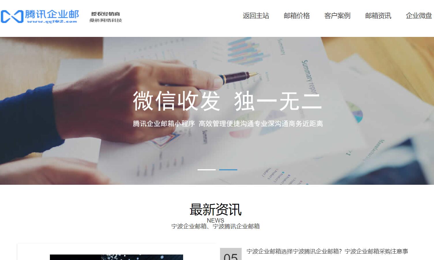 寧波企業(yè)郵箱、寧波外貿(mào)郵箱、寧波騰訊企業(yè)郵箱、寧波QQ企業(yè)郵箱、寧波外貿(mào)企業(yè)郵箱等是騰訊企業(yè)郵箱寧波(浙江)服務中心桑橋網(wǎng)絡科技有限公司寧波分公司的主營業(yè)務。寧波騰訊企業(yè)郵箱( www.qq102.com/ningbo )支持獲取無限的郵箱容量,支持各種超大附件的上傳發(fā)送,支持外貿(mào)郵件的全球互聯(lián)互通互發(fā)!杭州桑橋網(wǎng)絡科技有限公司( www.sangqiao.com )為你辦理升級開通辦理網(wǎng)易企業(yè)郵箱,用于外貿(mào)(國際貿(mào)易)業(yè)務往來時的電子郵件收發(fā),以及其他商務往來的電子郵件收發(fā)。