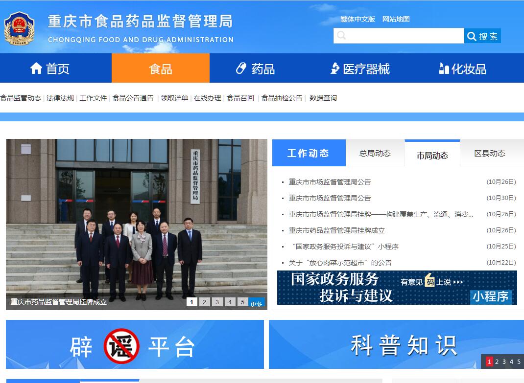 根據(jù)《國務(wù)院關(guān)于地方改革完善食品藥品監(jiān)督管理體制的指導(dǎo)意見》(國發(fā)〔2013〕18號)和《重慶市人民政府關(guān)于改革完善食品藥品監(jiān)督管理體制的實施意見》(渝府發(fā)〔2013〕48號),設(shè)立重慶市食品藥品監(jiān)督管理局(正廳局級),掛重慶市食品安全委員會辦公室牌子,為重慶市人民政府直屬機構(gòu)。其主要職責:(一)負責貫徹實施食品(含食品添加劑、保健食品,下同)安全、藥品(含中藥、民族藥,下同)、醫(yī)療器械、化妝品監(jiān)督管理的法律、法規(guī)、規(guī)章和方針政策;負責起草地方性法規(guī)和規(guī)章,擬訂地方性政策、規(guī)劃并監(jiān)督實施。推動建立落實食品藥品安全企業(yè)主體責任、地方人民政府負總責的機制,建立食品藥品重大信息直報制度,并組織實施和監(jiān)督檢查,著力防范區(qū)域性、系統(tǒng)性食品藥品安全風險。(二)負責組織落實食品行政許可的實施辦法。建立食品安全隱患排查治理機制,制定全市食品安全檢查年度計劃、重大整頓治理方案并組織落實。負責建立食品安全信息統(tǒng)一公布制度,公布重大食品安全信息。參與制定食品安全風險監(jiān)測計劃實施方案、食品安全地方標準,根據(jù)食品安全風險監(jiān)測計劃實施方案開展食品安全風險監(jiān)測工作。(三)負責組織實施國家藥典等藥品和醫(yī)療器械標準、分類管理制度。負責組織實施藥品和醫(yī)療器械研制、生產(chǎn)、經(jīng)營、使用質(zhì)量管理規(guī)范。負責藥品和醫(yī)療器械的注冊、生產(chǎn)許可、經(jīng)營許可并監(jiān)督檢查。建立藥品、化妝品不良反應(yīng)和醫(yī)療器械不良事件監(jiān)測體系,并開展監(jiān)測和處置工作。組織實施執(zhí)業(yè)藥師資格準入制度,負責執(zhí)業(yè)藥師注冊登記。參與制定地方增補基本藥物目錄,配合實施基本藥物制度。組織實施化妝品監(jiān)督管理辦法。(四)負責制定食品、藥品、醫(yī)療器械、化妝品監(jiān)督管理的稽查制度并組織實施,組織查處重大違法行為。規(guī)范行政執(zhí)法行為,完善行政執(zhí)法與刑事司法銜接機制。建立問題產(chǎn)品召回和處置制度并監(jiān)督實施。(五)負責食品藥品安全事故應(yīng)急體系建設(shè),組織和指導(dǎo)食品藥品安全事故應(yīng)急處置和調(diào)查處理工作,監(jiān)督事故查處落實情況。(六)負責制定食品藥品安全科技發(fā)展規(guī)劃并組織實施,推動食品藥品檢驗檢測體系、電子監(jiān)管追溯體系和信息化建設(shè)。(七)負責開展食品藥品安全宣傳、教育培訓(xùn)、對外交流與合作。推進誠信體系建設(shè)。(八)承擔重慶市食品安全委員會日常工作。負責食品安全監(jiān)督管理綜合協(xié)調(diào),推動健全協(xié)調(diào)聯(lián)動機制。督促檢查區(qū)縣(自治縣)人民政府履行食品藥品安全監(jiān)督管理職責并負責考核評價。(九)承辦重慶市人民政府以及重慶市食品安全委員會交辦的其他事項。