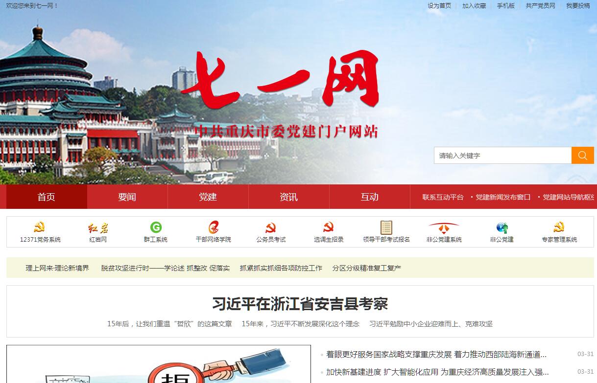 七一網(wǎng)是中共重慶市委組織部、當代黨員雜志社共同主辦的一個全國性黨建門戶網(wǎng)站。