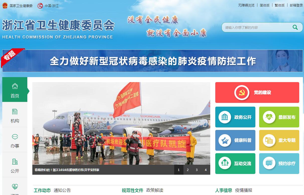 浙江省衛(wèi)生健康委員會主要職責:(一)組織擬訂全省國民健康政策,擬訂衛(wèi)生健康事業(yè)發(fā)展地方性法規(guī)、規(guī)章草案和政策、規(guī)劃,制定地方標準和規(guī)范并組織實施。統(tǒng)籌規(guī)劃衛(wèi)生健康資源配置,指導市縣衛(wèi)生健康規(guī)劃的編制和實施。制定并組織實施衛(wèi)生健康基本公共服務均等化、普惠化、便捷化和公共資源向基層延伸等政策措施。(二)協(xié)調(diào)推進深化醫(yī)藥衛(wèi)生體制改革,研究提出深化醫(yī)藥衛(wèi)生體制改革重大方針、政策、措施的建議。組織深化公立醫(yī)院綜合改革,推進管辦分離,健全現(xiàn)代醫(yī)院管理制度,加強公立醫(yī)院黨的建設,制定并組織實施推動衛(wèi)生健康公共服務提供主體多元化、提供方式多樣化的政策措施,提出醫(yī)療服務和藥品價格政策的建議。會同有關部門制定并實施健康服務業(yè)發(fā)展的政策措施。(三)制定并組織落實疾病預防控制規(guī)劃、免疫規(guī)劃以及嚴重危害人民健康公共衛(wèi)生問題的干預措施。負責衛(wèi)生應急工作,組織指導突發(fā)公共衛(wèi)生事件的預防控制和各類突發(fā)公共事件的醫(yī)療衛(wèi)生救援。(四)組織擬訂并協(xié)調(diào)落實應對人口老齡化政策措施,負責推進老年健康服務體系建設和醫(yī)養(yǎng)結(jié)合工作。(五)組織實施國家基本藥物政策和國家基本藥物制度,開展藥品使用監(jiān)測、臨床綜合評價和短缺藥品預警,提出我省基本藥物價格政策的建議。開展食品安全風險監(jiān)測,依法制定并公布食品安全地方標準,組織指導食品安全企業(yè)標準備案工作。(六)負責職責范圍內(nèi)的職業(yè)衛(wèi)生、放射衛(wèi)生、環(huán)境衛(wèi)生、學校衛(wèi)生、公共場所衛(wèi)生、飲用水衛(wèi)生和傳染病防治等公共衛(wèi)生的監(jiān)督管理,健全衛(wèi)生健康綜合監(jiān)督體系。承擔《煙草控制框架公約》履約的全省牽頭工作。(七)制定醫(yī)療機構、醫(yī)療服務行業(yè)管理辦法并監(jiān)督實施,建立醫(yī)療服務評價和監(jiān)督管理體系。負責衛(wèi)生健康行業(yè)安全生產(chǎn)監(jiān)督管理工作。會同有關部門組織實施衛(wèi)生健康專業(yè)技術人員資格標準。制定并組織實施醫(yī)療服務規(guī)范、標準和衛(wèi)生健康專業(yè)技術人員執(zhí)業(yè)規(guī)則、服務規(guī)范。指導推動醫(yī)療機構、公共衛(wèi)生機構質(zhì)量管理和品牌培育。(八)負責計劃生育管理和服務工作,開展人口監(jiān)測預警,研究提出人口與家庭發(fā)展相關政策建議,完善計劃生育政策。(九)指導基層衛(wèi)生健康工作,指導基層醫(yī)療衛(wèi)生、婦幼健康服務體系和全科醫(yī)生隊伍建設。推進衛(wèi)生健康科技創(chuàng)新發(fā)展。(十)組織制定中醫(yī)藥、民族醫(yī)藥發(fā)展規(guī)劃,并納入衛(wèi)生健康事業(yè)發(fā)展總體規(guī)劃,負責中醫(yī)藥的繼承、創(chuàng)新和中西醫(yī)結(jié)合工作,統(tǒng)籌協(xié)調(diào)中西醫(yī)發(fā)展。(十一)負責來浙中央領導、重要外賓以及省保健對象的醫(yī)療保健工作,負責國家和省重要會議與重大活動的醫(yī)療衛(wèi)生保障工作。(十二)完成省委、省政府交辦的其他任務。