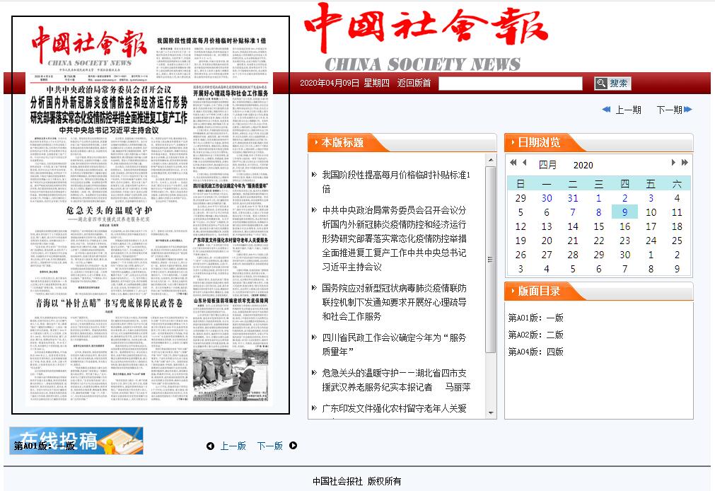 中國社會報電子版,中國社會報數(shù)字報?!吨袊鐣蟆?986年4月6日正式創(chuàng)刊。民政部主管。國內刊號:CN11-0021 。每周32個版,周一至周五出版。創(chuàng)辦以來,《中國社會報》始終是民政輿論宣傳的主渠道、主陣地、主力軍。主要任務是:以習近平新時代中國特色社會主義思想為指導,貫徹習近平關于黨的新聞輿論工作的重要講話精神,宣傳黨中央國務院關于民生民政工作的重要方針政策和重大決策部署,宣傳民政部黨組的各項工作部署。報道地方各級民政部門的新實踐新探索,反映民政服務對象的新訴求新期盼,展示民政工作者的新作為新風貌。積極挖掘、推廣、宣傳民政系統(tǒng)優(yōu)秀典型,充分發(fā)揮先進人物的榜樣作用,教育和激勵各級民政干部努力踐行“民政為民、民政愛民”工作理念,全心全意做好黨和人民的民政事業(yè),為民政事業(yè)改革發(fā)展營造良好的輿論氛圍。為實現(xiàn)黨的總任務、總目標服務?!吨袊鐣蟆返淖x者對象是各級黨政領導、各級民政部門干部、各類民政服務機構從業(yè)人員、部分民政服務對象和關心民政事業(yè)的各界人士。2018年發(fā)行量14.8萬份。