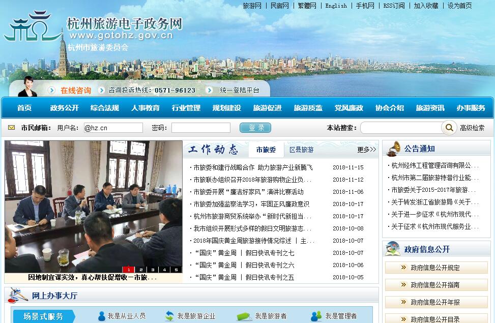 您當(dāng)前的位置:網(wǎng)站首頁 > 目錄主分類 > 社會(huì)教育 > 政府組織 > 地方政府網(wǎng)站 > 杭州市旅游委員會(huì)