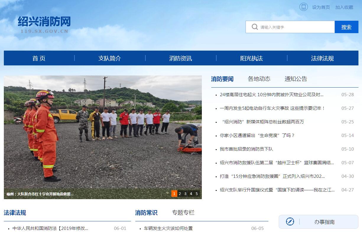 紹興消防網(wǎng)由紹興市消防救援支隊主辦。紹興市消防救援支隊下轄越城、柯橋、諸暨、上虞、嵊州、新昌、濱海新城7個大隊和支隊直屬的戰(zhàn)勤保障大隊,現(xiàn)有21個執(zhí)勤中隊,配有各類執(zhí)勤消防車140輛(舉高類24輛、滅火類74輛、專勤車27輛、戰(zhàn)保車15輛),進口車92輛,占總數(shù)的70.2%,各類器材裝備4.2萬余件(套),泡沫儲量160余噸。近年來,紹興市消防救援支隊圍繞服務經(jīng)濟社會發(fā)展大局,緊盯防火、滅火兩大中心任務,堅持問題導向,強化創(chuàng)新發(fā)展,消防工作和隊伍建設(shè)取得了顯著成效。支隊黨委連續(xù)三年(2014年至2016年)被總隊黨委評為“好班子”,支隊兩次(2014年、2016年)被總隊評為先進支隊,兩次(2013年、2015年)被市政府榮記集體二等功,2016年被市委市政府評為“最美紹興人”稱號,2017年被市政府授予“人民滿意消防衛(wèi)士”稱號、先進勞動模范集體。2019年榮膺首屆“紹興青年五四獎章集體”。近年來,先后有1個單位榮立集體一等功,4個單位榮立集體二等功,21個單位榮立集體三等功,7人次榮立個人一等功,18人次榮立個人二等功,8名個人分別被評為全國優(yōu)秀人民警察、浙江杰出青年、全省模范人民警察等稱號。近年來,在全市實施“百千萬”消防隊伍建設(shè)工程,按照“有組織領(lǐng)導、有合格隊員、有標準裝備、有經(jīng)費保障、有完善制度”的“五有”標準建設(shè)標準化專職、志愿消防隊伍。目前,全市共有專職消防隊82支、志愿消防隊1368支、志愿消防隊員8000余人。同時,262個社區(qū)和1402家消防安全重點單位建立微型消防站,117個鄉(xiāng)鎮(zhèn)(街道)落實消防安全網(wǎng)格規(guī)范化管理。