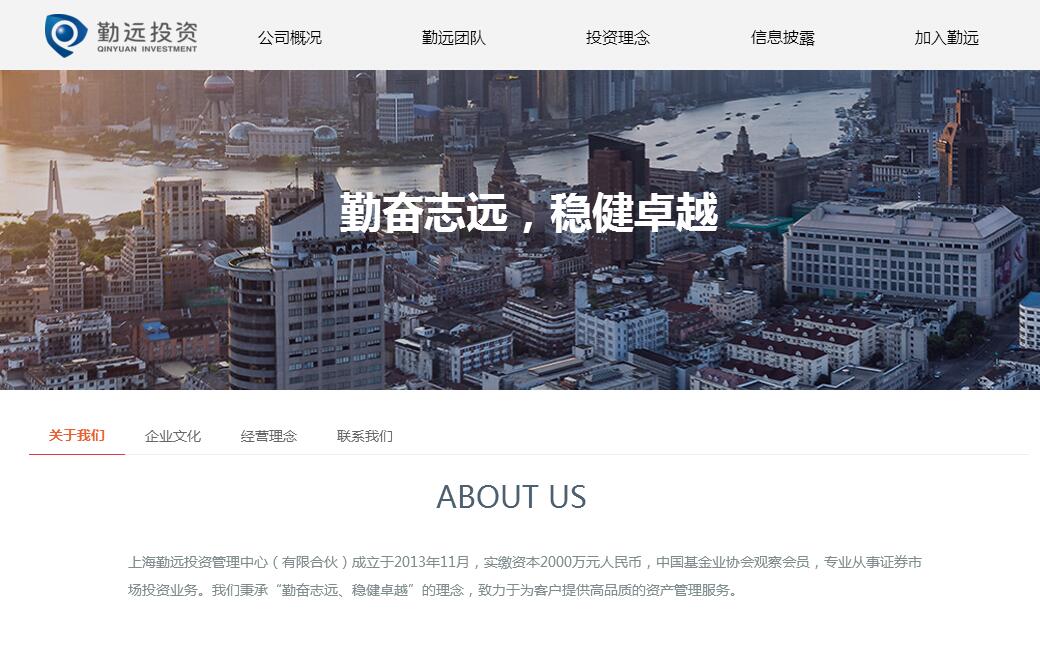 | 網(wǎng)站簡(jiǎn)介: 上海勤遠(yuǎn)投資管理中心(有限合伙)成立于2013年11月,實(shí)繳資本2000萬元人民幣,中國基金業(yè)協(xié)會(huì)觀察會(huì)員,專業(yè)從事證券市場(chǎng)投資業(yè)務(wù)。管理團(tuán)隊(duì)成員均具備豐富的從業(yè)經(jīng)驗(yàn),歷經(jīng)國內(nèi)外證券市場(chǎng)的跌宕起伏。我們秉承“勤奮志遠(yuǎn)、穩(wěn)健卓越”的理念,打造“多策略、全方位”的一體化投資平臺(tái),致力于為客戶提供高品質(zhì)的資產(chǎn)管理服務(wù)。 |