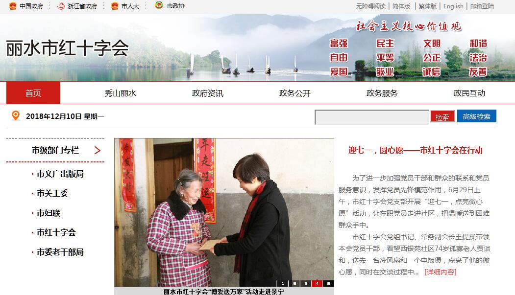 麗水市紅十字會,是中國紅十字會的地級分會,是從事人道主義工作的社會救助團體,以弘揚“人道、博愛、奉獻”的紅十字精神,保護人的生命和健康,促進人類和平進步事業(yè)為宗旨。麗水市紅十字會始建于1988年9月。2000年7月,麗水撤地設市,麗水地區(qū)紅十字會更名為麗水市紅十字會。2002年4月24日,召開麗水市紅十字會第一次會員代表大會,選舉產生麗水市紅十字會第一屆理事會理事34人。選舉莊志清為會長,孟文賢為常務副會長,鄭利劍、藍資霞為副會長,陶小芳為秘書長。2007年9月28日,麗水市紅十字會第二次會員代表大會在麗水召開,這是麗水市紅十字會發(fā)展史上的一個重要里程碑。大會聘請市委書記樓陽生,市委副書記、市長陳榮高為名譽會長,市人大副主任劉國安、市政協副主席韋鐵民為名譽副會長,選舉產生麗水市紅十字會第二屆理事會理事45名。選舉莊志清為會長,邱務土、鄭利劍、汪帆、江春松為副會長,項金平為專職副會長,任命陶小芳為秘書長。其主要職責:根據《中華人民共和國紅十字會法》和《中國紅十字會章程》,麗水市紅十字會主要履行以下職責:1、宣傳、貫徹、執(zhí)行《中華人民共和國紅十字會法》,開展備災、救災工作。2、普及應急救護和常見疾病預防知識,開展初級現場救護培訓,組織群眾參加意外傷害和自然災害的現場救護。3、依法開展募捐活動和人道主義救助工作。4、宣傳和推動無償獻血;開展造血干細胞、遺體(器官)捐獻工作,預防控制艾滋病宣傳和健康教育、關愛艾滋病病毒感染者工作。5、吸收會員、招募志愿者開展社會服務及社區(qū)紅十字服務工作。6、開展有益于青少年身心健康的紅十字青少年活動。7、參加國際人道主義救援工作,開展與國際紅十字組織和各國紅十字會的交流與合作。