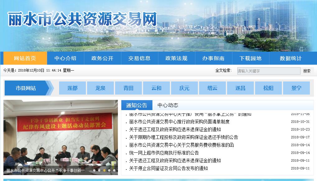 麗水市公共資源交易中心成立于1998年10月,原名麗水建設(shè)工程交易中心。2004年10月更名為麗水市招標(biāo)投標(biāo)中心,同時(shí)將麗水市政府采購中心并入,實(shí)行兩塊牌子一套人馬。 2016年6月更名為麗水市公共資源交易中心。麗水市公共資源交易中心是麗水市行政審批服務(wù)管理辦公室管理的副縣級(jí)純公益類事業(yè)單位。目前有工作人員27名,其中在編15人,編外用工9人,勞務(wù)派遣3人。單位地址:麗水市人民街615號(hào)商會(huì)大廈5樓。內(nèi)設(shè)機(jī)構(gòu)為辦公室、業(yè)務(wù)受理處、現(xiàn)場(chǎng)服務(wù)管理處、集中采購業(yè)務(wù)處、綜合管理處。麗水市公共資源交易中心的職能為:負(fù)責(zé)維護(hù)建設(shè)工程交易、政府采購、國(guó)有產(chǎn)權(quán)交易、國(guó)有資源開發(fā)經(jīng)營(yíng)權(quán)出讓、農(nóng)村國(guó)有產(chǎn)權(quán)和其他涉及政府購買服務(wù)等公共資源交易秩序,為市場(chǎng)主體、社會(huì)公眾、行政監(jiān)督管理部門提供公共資源交易綜合服務(wù);直接組織實(shí)施政府集中采購;負(fù)責(zé)“政采云”及政府電子交易系統(tǒng)管理工作;負(fù)責(zé)進(jìn)場(chǎng)公共資源交易項(xiàng)目資料受理、審核、信息發(fā)布等工作;負(fù)責(zé)公共資源交易綜合評(píng)審專家?guī)斓氖褂煤途S護(hù)工作;負(fù)責(zé)項(xiàng)目交易現(xiàn)場(chǎng)秩序維護(hù)和見證,制止和糾正違反交易現(xiàn)場(chǎng)管理制度行為,向有關(guān)部門報(bào)告項(xiàng)目交易活動(dòng)中的違法違規(guī)行為;協(xié)助政府有關(guān)部門對(duì)投訴等涉及公共資源交易活動(dòng)的相關(guān)案件進(jìn)行調(diào)查處理;指導(dǎo)和管理各縣(市、區(qū))公共資源交易分中心開展相關(guān)業(yè)務(wù)。2009年,麗水市公共資源交易中心先后開發(fā)建設(shè)了全市統(tǒng)一的專家?guī)旒白詣?dòng)語音通知系統(tǒng)、評(píng)標(biāo)區(qū)域門禁系統(tǒng)、計(jì)算機(jī)輔助評(píng)標(biāo)系統(tǒng)、遠(yuǎn)程評(píng)標(biāo)系統(tǒng)、實(shí)現(xiàn)了招標(biāo)公告網(wǎng)上發(fā)布,招標(biāo)文件網(wǎng)上下載,交易過程網(wǎng)上轉(zhuǎn)播,專家評(píng)標(biāo)電腦輔助,異地標(biāo)書遠(yuǎn)程評(píng)審,交易結(jié)果網(wǎng)上公示等。2017年麗水市公共資源電子交易系統(tǒng)上線,實(shí)現(xiàn)了全流程電子化開標(biāo)評(píng)標(biāo)。2018年4月,“麗水掌上交易”移動(dòng)服務(wù)平臺(tái)正式上線運(yùn)行,作為全國(guó)首家正式上線的公共資源交易微信小程序,標(biāo)志著麗水市在公共資源交易平臺(tái)信息化建設(shè)上站上了新臺(tái)階。麗水市公共資源交易中心遵循“便捷、規(guī)范、高效、廉潔”的辦事原則,“公開、公平、公正”的職業(yè)操守,“嚴(yán)謹(jǐn)、求實(shí)、創(chuàng)新”的管理理念,努力打造:依法辦事的平臺(tái)、優(yōu)質(zhì)服務(wù)的平臺(tái)、廉潔高效的平臺(tái)。