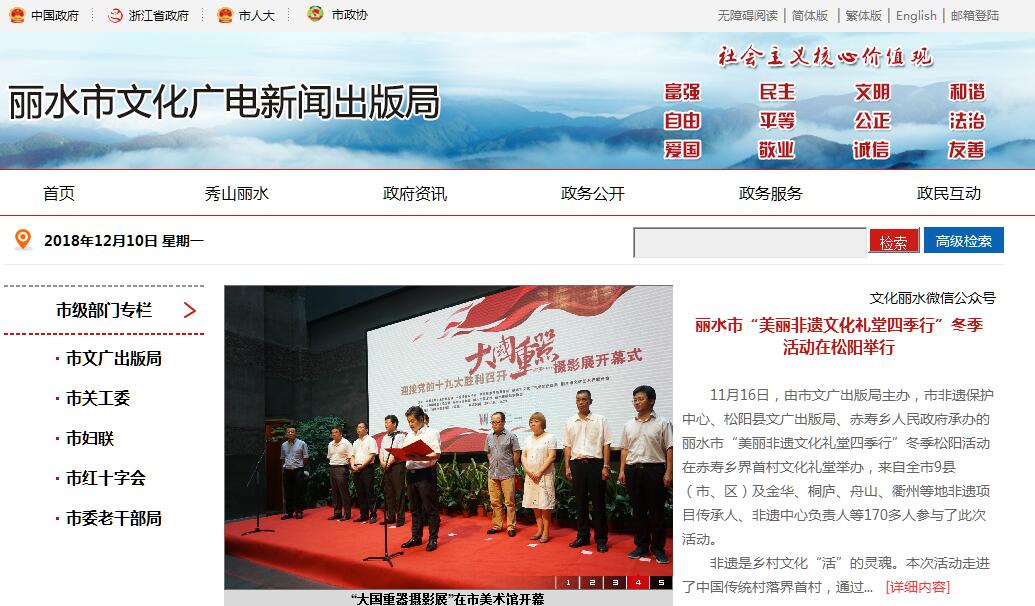 麗水市文化廣電新聞出版局主要職責(zé):(一)貫徹執(zhí)行黨和國家關(guān)于文化、文物、廣播影視、新聞出版和著作權(quán)的方針、政策和法律、法規(guī)、規(guī)章;負責(zé)起草全市文化、文物、廣播影視、新聞出版和著作權(quán)管理等方面的政府規(guī)范性文件和政策,并組織實施。研究擬訂全市文化、文物、廣播影視、新聞出版事業(yè)發(fā)展和基本建設(shè)規(guī)劃,并監(jiān)督實施。(二)組織擬訂文化、廣播影視、新聞出版等產(chǎn)業(yè)發(fā)展戰(zhàn)略、中長期發(fā)展規(guī)劃和產(chǎn)業(yè)政策,負責(zé)文化產(chǎn)業(yè)宣傳推介,促進文化產(chǎn)業(yè)發(fā)展。負責(zé)文化、文物、廣播影視、新聞出版及著作權(quán)統(tǒng)計工作;指導(dǎo)全市文化、文物、廣播影視、新聞出版和著作權(quán)領(lǐng)域體制機制改革和產(chǎn)業(yè)發(fā)展。(三)負責(zé)全市文化、文物、廣播影視、新聞出版和著作權(quán)的行政(行業(yè))管理;按照審批權(quán)限負責(zé)文化、文物、廣播影視、新聞出版和著作權(quán)等方面的行政審批、審核轉(zhuǎn)報等工作;指導(dǎo)全市文化、文物、廣播影視、新聞出版和著作權(quán)行政審批工作。(四)依法管理社會文化市場,負責(zé)全市文化、文物、廣播影視、新聞出版市場的監(jiān)管;指導(dǎo)全市文化市場管理和綜合執(zhí)法工作;負責(zé)辦理文化、文物、廣播影視、新聞出版和著作權(quán)行政復(fù)議案件;負責(zé)組織、指導(dǎo)、協(xié)調(diào)全市“掃黃打非”工作。(五)指導(dǎo)、管理全市戲劇、音樂、舞蹈、曲藝、雜技、美術(shù)、書法、文學(xué)、電視電影等藝術(shù)事業(yè),重點抓好各門類藝術(shù)精品的創(chuàng)作與制作管理;指導(dǎo)藝術(shù)團(隊)組織和業(yè)務(wù)建設(shè);指導(dǎo)、組織、協(xié)調(diào)全市性重大文化活動。(六)綜合管理全市社會文化和圖書館事業(yè),指導(dǎo)圖書館、文化館(站)和影劇院建設(shè);推進民族民間藝術(shù)保護工作;組織、指導(dǎo)開展群眾文化活動;指導(dǎo)開展少兒文化、老年文化和民族文化工作。(七)綜合管理全市文物、博物館和非物質(zhì)文化遺產(chǎn)保護事業(yè);負責(zé)全國、省、市級文物保護單位的初審、報批工作,負責(zé)市級文物保護單位的管理工作;負責(zé)世界文化遺產(chǎn)項目的推薦、申報和管理;協(xié)同市建設(shè)(規(guī)劃)局負責(zé)歷史文化名城(鎮(zhèn)、村)、歷史文化保護區(qū)推薦申報和監(jiān)督管理工作;組織實施文物保護與搶救、修繕工作;依法申報考古發(fā)掘、文物保護、文物維修項目;指導(dǎo)、協(xié)調(diào)全市文物管理、保護、利用、安全等工作;指導(dǎo)、協(xié)調(diào)全市非物質(zhì)文化遺產(chǎn)管理工作。(八)負責(zé)指導(dǎo)推進新媒體新業(yè)態(tài)融合發(fā)展;負責(zé)全市廣播影視、信息網(wǎng)絡(luò)視聽節(jié)目服務(wù)的科技工作,制定有關(guān)技術(shù)政策和標準,指導(dǎo)和協(xié)調(diào)全市廣播電視重大技術(shù)項目建設(shè);負責(zé)監(jiān)管廣播影視節(jié)目、衛(wèi)星電視節(jié)目收錄和通過信息網(wǎng)絡(luò)、公共視聽載體向公眾傳播的視聽節(jié)目。(九)監(jiān)督管理全市新聞出版活動和印刷復(fù)制業(yè);負責(zé)本轄區(qū)內(nèi)各類出版物的審讀和年檢審核。(十)按規(guī)定權(quán)限申報和實施全市對外及對港澳臺文化、文物、廣播影視、新聞出版和著作權(quán)管理領(lǐng)域的交流計劃和項目,推進對外及對港澳臺交流與合作。(十一)指導(dǎo)文化、文物、廣播影視、新聞出版和著作權(quán)行業(yè)協(xié)會、學(xué)會及其他文化類社會組織開展工作。(十二)承辦市政府交辦的其他事項。