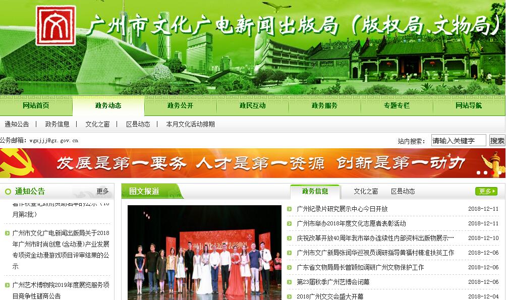 根據(jù)省委、省政府批準(zhǔn)的廣州市人民政府職能轉(zhuǎn)變和機(jī)構(gòu)改革方案,設(shè)立廣州市文化廣電新聞出版局(以下簡稱市文化廣電新聞出版局),加掛廣州市版權(quán)局、廣州市文物局牌子。主要職責(zé)如下:(一)貫徹執(zhí)行國家、省、市有關(guān)文化藝術(shù)、文物保護(hù)、廣播電影電視、新聞出版和著作權(quán)管理的方針政策和法律法規(guī);起草有關(guān)地方性法規(guī)、規(guī)章草案,擬訂文化藝術(shù)、文物保護(hù)、廣播電影電視、新聞出版(版權(quán))事業(yè)和產(chǎn)業(yè)發(fā)展規(guī)劃并組織實(shí)施。(二)研究制定文化藝術(shù)、文物保護(hù)、廣播電影電視和新聞出版(版權(quán))事業(yè)和產(chǎn)業(yè)發(fā)展的政策措施;指導(dǎo)和協(xié)調(diào)文化藝術(shù)、文物保護(hù)、廣播電影電視、新聞出版(版權(quán))事業(yè)和產(chǎn)業(yè)發(fā)展;指導(dǎo)和推進(jìn)文化藝術(shù)、文物保護(hù)、廣播電影電視、新聞出版領(lǐng)域的體制改革和機(jī)制創(chuàng)新。(三)指導(dǎo)、管理文化藝術(shù)事業(yè)和社會(huì)文化事業(yè);協(xié)調(diào)、指導(dǎo)藝術(shù)創(chuàng)作和生產(chǎn),扶持代表性、示范性、實(shí)驗(yàn)性文化藝術(shù)品種,推動(dòng)各門類藝術(shù)的發(fā)展;推進(jìn)公共文化服務(wù),引導(dǎo)公共文化產(chǎn)品生產(chǎn);指導(dǎo)圖書館、文化館(站、室)事業(yè)和基層文化建設(shè);組織協(xié)調(diào)全市文化設(shè)施建設(shè)規(guī)劃,指導(dǎo)、規(guī)劃、協(xié)調(diào)和監(jiān)管市重點(diǎn)文化藝術(shù)、廣播電影電視基礎(chǔ)設(shè)施和基層文化設(shè)施建設(shè)工作;管理全市性重大文化藝術(shù)活動(dòng)。(四)組織協(xié)調(diào)文化遺產(chǎn)的管理和保護(hù);指導(dǎo)和管理文物、博物館事業(yè),組織指導(dǎo)文物的保護(hù)搶救、考古發(fā)掘和開發(fā)利用工作;組織實(shí)施非物質(zhì)文化遺產(chǎn)保護(hù)和優(yōu)秀民族文化的傳承普及工作;負(fù)責(zé)本市世界文化遺產(chǎn)項(xiàng)目的申報(bào)和中國世界文化遺產(chǎn)地的管理工作;參與歷史文化名城、名鎮(zhèn)、名村的保護(hù)和監(jiān)督管理工作。(五)負(fù)責(zé)廣播電視行業(yè)管理;監(jiān)管廣播電視節(jié)目、衛(wèi)星電視節(jié)目收錄和通過信息網(wǎng)絡(luò)傳播廣播電影電視類節(jié)目以及廣播電視節(jié)目制作經(jīng)營活動(dòng)、從事廣播電影電視節(jié)目制作的民辦機(jī)構(gòu);負(fù)責(zé)廣播電影電視、信息網(wǎng)絡(luò)視聽節(jié)目服務(wù)機(jī)構(gòu)和業(yè)務(wù)的監(jiān)管并實(shí)施準(zhǔn)入和退出管理,負(fù)責(zé)全市廣播電視節(jié)目監(jiān)測(cè)工作;組織和管理全市廣播電視覆蓋網(wǎng)建設(shè)、技術(shù)維護(hù)和開發(fā)工作,管理全市性重大廣播電影電視活動(dòng)。(六)指導(dǎo)各區(qū)、鎮(zhèn)廣播電視播出機(jī)構(gòu)和廣播電視節(jié)目、影視制作單位的工作;組織審查在廣播電視中播出的電視劇及其他節(jié)目、信息網(wǎng)絡(luò)傳播電視類節(jié)目的內(nèi)容和質(zhì)量。(七)負(fù)責(zé)對(duì)新聞出版發(fā)行機(jī)構(gòu)進(jìn)行行業(yè)監(jiān)管,實(shí)施準(zhǔn)入和退出管理;承擔(dān)轄區(qū)內(nèi)非法出版物、違禁出版物的鑒定工作;指導(dǎo)查處嚴(yán)重違規(guī)出版物和違法、違規(guī)出版活動(dòng);對(duì)從事出版活動(dòng)的民辦機(jī)構(gòu)進(jìn)行監(jiān)管;監(jiān)督管理報(bào)紙、期刊、圖書、音像制品、電子出版物市場。(八)會(huì)同有關(guān)部門監(jiān)督管理印刷業(yè);負(fù)責(zé)印刷企業(yè)開辦、年審和境外出版物(印刷品)來料加工的審核工作;指導(dǎo)開展查處違法、違規(guī)印刷行為的工作。(九)負(fù)責(zé)著作權(quán)管理工作,處理涉外著作權(quán)關(guān)系,調(diào)解著作權(quán)糾紛,監(jiān)督管理著作權(quán)貿(mào)易活動(dòng);指導(dǎo)著作權(quán)行政執(zhí)法,協(xié)調(diào)查處著作權(quán)侵權(quán)案件;指導(dǎo)開展著作權(quán)咨詢、鑒定等服務(wù)工作。(十)協(xié)調(diào)、指導(dǎo)文化產(chǎn)業(yè)園區(qū)、基地和產(chǎn)業(yè)集群建設(shè),促進(jìn)文化產(chǎn)業(yè)和文化創(chuàng)意產(chǎn)業(yè)的繁榮與發(fā)展;指導(dǎo)協(xié)調(diào)網(wǎng)吧等上網(wǎng)服務(wù)營業(yè)場所的行業(yè)管理工作;負(fù)責(zé)對(duì)動(dòng)漫游戲會(huì)展交易節(jié)慶等活動(dòng)的管理。(十一)指導(dǎo)文化市場綜合行政執(zhí)法工作;負(fù)責(zé)對(duì)文化藝術(shù)經(jīng)營活動(dòng)進(jìn)行行業(yè)監(jiān)管。(十二)負(fù)責(zé)管理文化藝術(shù)、文物保護(hù)、廣播電影電視、新聞出版和版權(quán)方面的對(duì)外交流與合作工作。(十三)制定文化人才培養(yǎng)規(guī)劃,管理行業(yè)教育培訓(xùn)工作;指導(dǎo)文化藝術(shù)、文物保護(hù)、廣播電影電視、新聞出版和版權(quán)事業(yè)的科研與開發(fā)應(yīng)用工作。(十四)指導(dǎo)各區(qū)文化藝術(shù)、文物保護(hù)、廣播電影電視、新聞出版和版權(quán)工作;指導(dǎo)文化藝術(shù)、文物保護(hù)、廣播電影電視、新聞出版和版權(quán)方面的行業(yè)協(xié)會(h