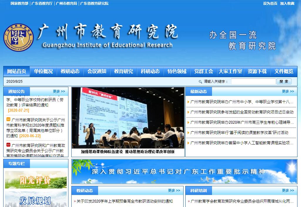 | 網(wǎng)站簡介: 廣州市教育研究院是廣州市教育局直屬的綜合性教育科學研究機構。廣州市教育研究院主要職能:提供專業(yè)化教育決策咨詢服務;從事基礎教育、職業(yè)教育和特殊教育的教學研究、師資培訓、課程教材教法改革實驗、教學質量評價及考試命題研究;承擔全市教育科學規(guī)劃及課題指南的編制,國家級、省部級和市級教育科研項目的研究及過程管理、專業(yè)指導、評價與推廣;國家、省教育科學規(guī)劃課題與教學成果獎的推薦項目評審與指導等。 |