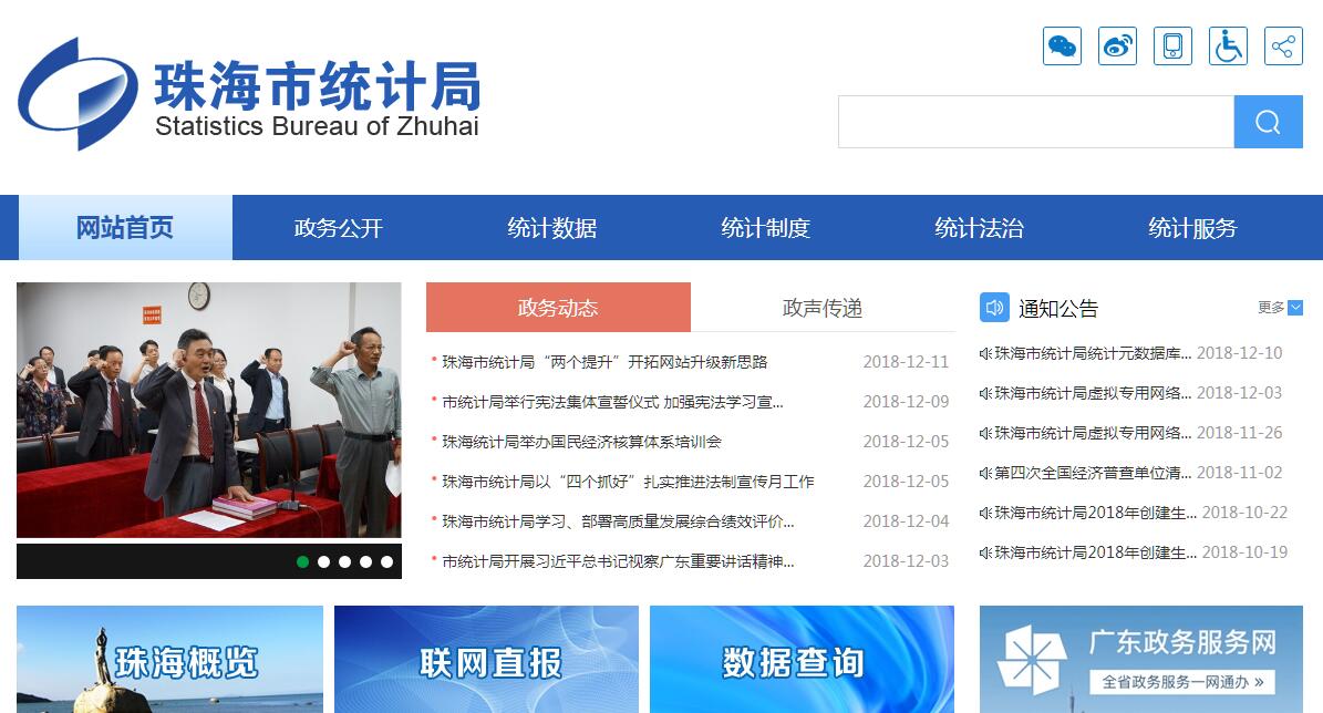 珠海市統(tǒng)計(jì)局主要職責(zé):(一)貫徹執(zhí)行國家和省有關(guān)統(tǒng)計(jì)工作的方針政策、方法制度和法律法規(guī),起草有關(guān)地方性法規(guī)、規(guī)章草案,擬訂全市統(tǒng)計(jì)工作規(guī)劃和調(diào)查計(jì)劃并組織實(shí)施;承擔(dān)組織和協(xié)調(diào)全市統(tǒng)計(jì)工作,確保統(tǒng)計(jì)數(shù)據(jù)真實(shí)、準(zhǔn)確、及時(shí)、完整的責(zé)任;監(jiān)督檢查統(tǒng)計(jì)法律、法規(guī)和制度的實(shí)施,組織開展統(tǒng)計(jì)法制宣傳、統(tǒng)計(jì)執(zhí)法檢查和統(tǒng)計(jì)巡查工作。(二)擬訂地方統(tǒng)計(jì)報(bào)表制度,組織實(shí)施全市及各區(qū)國民經(jīng)濟(jì)核算制度和投入產(chǎn)出調(diào)查,核算全市及各區(qū)生產(chǎn)總值,匯編提供國民經(jīng)濟(jì)核算資料。(三)組織實(shí)施全市人口、經(jīng)濟(jì)、農(nóng)業(yè)等重大市情市力普查,匯總、整理和提供有關(guān)市情市力方面的統(tǒng)計(jì)數(shù)據(jù)。(四)組織實(shí)施全市國民經(jīng)濟(jì)各行業(yè)的統(tǒng)計(jì)調(diào)查,收集、匯總、整理和提供有關(guān)調(diào)查的統(tǒng)計(jì)數(shù)據(jù),綜合整理和提供地質(zhì)勘查、旅游、對(duì)外經(jīng)濟(jì)、交通運(yùn)輸、郵政、教育、衛(wèi)生、社會(huì)保障、公用事業(yè)等全市性基本統(tǒng)計(jì)數(shù)據(jù)。(五)組織實(shí)施能源、投資、科技、人口、勞動(dòng)力、社會(huì)發(fā)展基本情況等統(tǒng)計(jì)調(diào)查,收集、匯總、整理和提供有關(guān)調(diào)查的統(tǒng)計(jì)數(shù)據(jù)。(六)組織和指導(dǎo)全市各區(qū)、各部門統(tǒng)計(jì)工作,統(tǒng)一核定、管理、公布全市性基本統(tǒng)計(jì)資料,定期發(fā)布全市國民經(jīng)濟(jì)和社會(huì)發(fā)展情況的統(tǒng)計(jì)信息,組織建立服務(wù)業(yè)統(tǒng)計(jì)信息共享和發(fā)布制度。(七)對(duì)國民經(jīng)濟(jì)、社會(huì)發(fā)展等情況進(jìn)行統(tǒng)計(jì)分析、統(tǒng)計(jì)預(yù)測(cè)和統(tǒng)計(jì)監(jiān)督,向市委、市政府及有關(guān)部門提供統(tǒng)計(jì)信息和咨詢建議。(八)依法審批或者備案全市各區(qū)、各部門統(tǒng)計(jì)調(diào)查項(xiàng)目,指導(dǎo)專業(yè)統(tǒng)計(jì)基礎(chǔ)工作、統(tǒng)計(jì)基層基礎(chǔ)規(guī)范化建設(shè),組織建立服務(wù)業(yè)統(tǒng)計(jì)信息管理制度,建立健全統(tǒng)計(jì)數(shù)據(jù)質(zhì)量審核、監(jiān)控和評(píng)估制度,開展對(duì)重要統(tǒng)計(jì)數(shù)據(jù)的審核、監(jiān)控和評(píng)估。(九)協(xié)助管理各區(qū)統(tǒng)計(jì)局主要負(fù)責(zé)人,指導(dǎo)全市統(tǒng)計(jì)專業(yè)技術(shù)隊(duì)伍建設(shè),會(huì)同有關(guān)部門組織管理全市統(tǒng)計(jì)專業(yè)技術(shù)資格考試、職務(wù)評(píng)聘、從業(yè)資格認(rèn)定工作。(十)建立并管理全市統(tǒng)計(jì)信息化系統(tǒng)和統(tǒng)計(jì)數(shù)據(jù)庫系統(tǒng),指導(dǎo)各區(qū)、各部門統(tǒng)計(jì)數(shù)據(jù)庫和網(wǎng)絡(luò)的基本標(biāo)準(zhǔn)和運(yùn)行規(guī)則的實(shí)施工作,指導(dǎo)全市統(tǒng)計(jì)信息化系統(tǒng)建設(shè)。(十一)承辦市人民政府和上級(jí)主管部門交辦的其他事項(xiàng)。