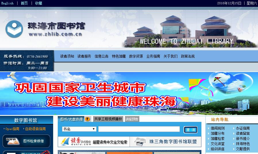 珠海市圖書(shū)館位于新香洲迎賓北路,占地面積30000平方米,建筑面積16000平方米。整體建筑集古典與現(xiàn)代于一體,環(huán)境優(yōu)美,造型獨(dú)特,富有地方特色,是一座與珠海歷史文化相呼應(yīng)、內(nèi)部功能現(xiàn)代化的公益性大型標(biāo)志性文化設(shè)施。圖書(shū)館設(shè)計(jì)藏書(shū)量200萬(wàn)冊(cè)(件),讀者席位1500個(gè),網(wǎng)絡(luò)信息點(diǎn)位800個(gè)。館內(nèi)設(shè)有中文圖書(shū)借閱廳、中文報(bào)刊閱覽室、外文書(shū)刊閱覽室、新報(bào)新刊閱覽室、珠海地方文獻(xiàn)閱覽室、港澳臺(tái)文獻(xiàn)閱覽室、古籍閱覽室、參考文獻(xiàn)閱覽室、展覽藝術(shù)長(zhǎng)廊、專(zhuān)家研究室、信息咨詢室、自學(xué)室等傳統(tǒng)服務(wù)區(qū),同時(shí)設(shè)有多功能報(bào)告廳、電子閱覽廳、音像視聽(tīng)室、培訓(xùn)室、演示廳等自動(dòng)化服務(wù)區(qū),是一座集信息化、智能化、多功能于一體的現(xiàn)代化圖書(shū)館。寬敞明亮的大堂,安靜舒適的閱讀室,豐富繁多的圖書(shū)種類(lèi),功能齊全的設(shè)施,為方便讀者和完善圖書(shū)館服務(wù)功能,還設(shè)立了購(gòu)書(shū)中心、商務(wù)中心、書(shū)吧、餐廳等配套服務(wù)設(shè)施,為讀者營(yíng)造休閑、舒適、溫馨的良好學(xué)習(xí)環(huán)境。珠海市圖書(shū)館是我市“三個(gè)文明”建設(shè)的重要窗口,它以嶄新的姿態(tài),以多角度、全方位的方式為廣大讀者提供高質(zhì)量、高水平的信息資源服務(wù),成為全市的知識(shí)資源集散中心、市民終身學(xué)習(xí)教育和文化休閑的理想場(chǎng)所。
