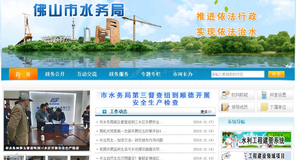佛山市水務(wù)局是屬于佛山市的水行政主管部門,主要搞水利工程建設(shè)管理,防汛抗旱,水資源管理等。其主要職責:(一)貫徹執(zhí)行有關(guān)水行政工作的法律、法規(guī)和方針、政策;結(jié)合實際,擬訂我市水行政工作的規(guī)定和政策,并組織實施。(二)統(tǒng)籌全市水務(wù)建設(shè)和管理,組織編制水務(wù)中長期發(fā)展規(guī)劃及年度計劃,并組織實施;組織區(qū)域國民經(jīng)濟總體規(guī)劃、城市規(guī)劃及重大建設(shè)項目中有關(guān)水務(wù)的論證工作。(三)統(tǒng)一管理全市水資源(含空中水、地表水、地下水);制定水資源中長期供求計劃、水量分配調(diào)度方案;組織實施取水許可制度和水資源費征收工作;發(fā)布水資源公報;負責計劃用水工作,組織、指導(dǎo)和監(jiān)督節(jié)約用水工作。(四)負責供水行業(yè)監(jiān)督管理。組織實施供水行業(yè)特許經(jīng)營管理制度;負責城市供水突發(fā)事件應(yīng)急管理工作,監(jiān)督檢查公共供水和自建設(shè)施供水單位的供水水質(zhì),監(jiān)督全市供水行業(yè)的服務(wù)質(zhì)量與安全生產(chǎn)工作。(五)負責排水、污水處理、再生水利用的行業(yè)監(jiān)督管理及特許經(jīng)營管理制度;負責排水、污水處理、再生水利用等基礎(chǔ)設(shè)施的維護管理工作;負責排水許可管理和監(jiān)督污水處理費征收管理工作;監(jiān)督排水行業(yè)的服務(wù)質(zhì)量與安全生產(chǎn)工作。(六)主管河道、湖泊、水庫、堤防(包括河涌、人工水道、人工湖),并組織指導(dǎo)整治;負責江河、湖泊、水庫及排水(污)管網(wǎng)水量、水質(zhì)的監(jiān)測;審定水域的納污能力,負責水功能區(qū)劃分,組織編制水環(huán)境治理及水資源保護規(guī)劃并監(jiān)督實施。(七)負責水政監(jiān)察和水行政執(zhí)法工作及有關(guān)的行政復(fù)議、行政訴訟應(yīng)訴工作,調(diào)解水事糾紛。(八)負責水務(wù)工程建設(shè)項目的技術(shù)審查,組織實施國家水務(wù)技術(shù)質(zhì)量標準和水務(wù)工程的規(guī)程、規(guī)范,擬訂有關(guān)地方標準并組織實施。(九)組織、指導(dǎo)水務(wù)工程設(shè)施、水域及其岸線的管理和保護;組織建設(shè)和管理具有控制性的或跨區(qū)的重要水務(wù)工程;指導(dǎo)水務(wù)工程建設(shè)的質(zhì)量安全監(jiān)管工作。(十)組織、協(xié)調(diào)農(nóng)田水利基本設(shè)施建設(shè)和管理;負責水土保持工作,組織協(xié)調(diào)水土流失的監(jiān)測和綜合防治。(十一)負責編制水務(wù)建設(shè)年度建設(shè)資金計劃并組織實施;監(jiān)督水務(wù)建設(shè)資金的使用。(十二)負責水務(wù)科技、對外合作交流和水務(wù)信息化工作。(十三)主管防汛防旱防風工作,承擔市人民政府防汛防旱防風指揮部的日常工作;負責輕舟機動大隊和潛水大隊的日常管理工作。(十四)承辦市人民政府和省水利廳交辦的其他事項。