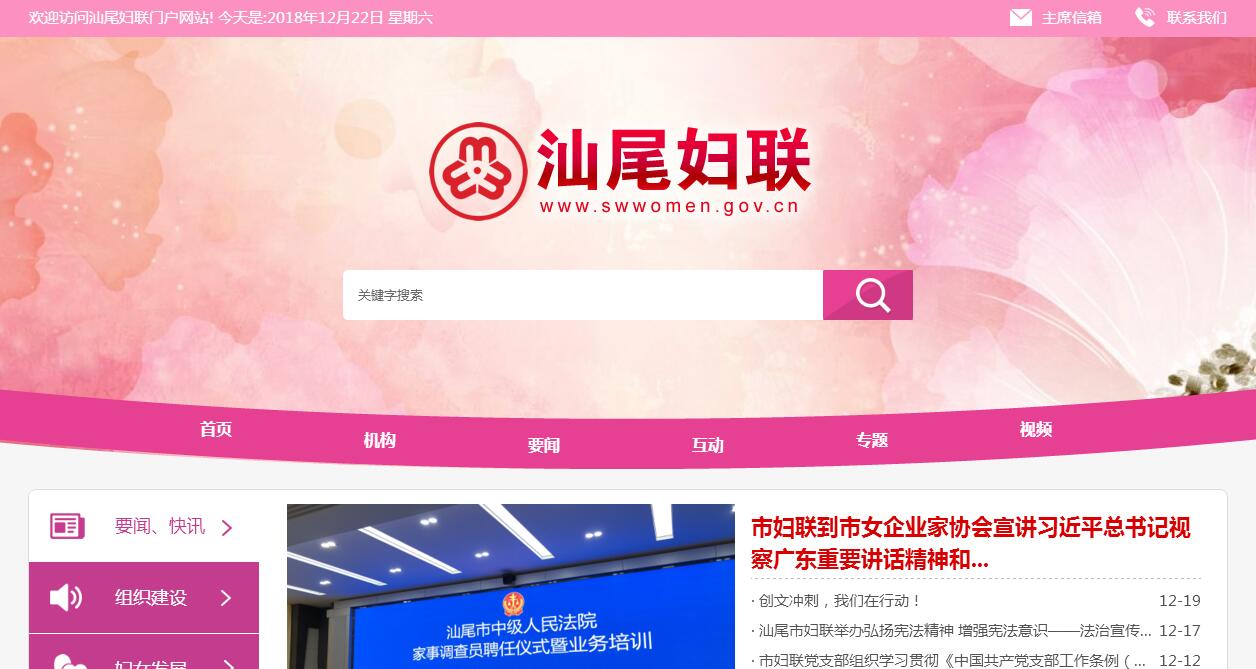 汕尾市婦女聯(lián)合會是中共汕尾市委領(lǐng)導(dǎo)下的全市各族各界婦女的群眾團體組織。其機關(guān)主要任務(wù)是:(一)緊密圍繞市委、市政府的中心任務(wù)開展工作,團結(jié)、動員組織婦女群眾投身改革開放和社會主義物質(zhì)文明、精神文明建設(shè),積極促進經(jīng)濟發(fā)展和社會進步,為維護改革發(fā)展穩(wěn)定的大局服務(wù)。(二)宣傳馬克思主義婦女觀和男女平等思想,教育、引導(dǎo)廣大婦女群眾樹立正確的世界觀、人生觀、價值觀,弘揚“自尊、自信、自立、自強”精神。積極推動和開展對婦女的科技文化及生產(chǎn)勞動技能教育,全面提高婦女素質(zhì)。(三)代表婦女參與國家和社會事務(wù)的民主管理、民主監(jiān)督;關(guān)注并加強研究涉及婦女切身利益的熱點、難點問題,及時向市委反映社情民意,提出對策建議;指導(dǎo)各級婦聯(lián)加強自身建設(shè)。(四)參與有關(guān)婦女兒童政策規(guī)定草案的擬定、修改;堅持為婦女兒童服務(wù)、為基層服務(wù),加強與社會各界的聯(lián)系,協(xié)調(diào)推動全社會為婦女兒童辦實事、辦好事;指導(dǎo)各縣(市、區(qū))開展婦女兒童工作。(五)聯(lián)系社會各界婦女組織,指導(dǎo)開展婦女工作;密切與其他市婦聯(lián)的聯(lián)系和合作,加強同港、澳、臺地區(qū)及華僑婦女、各民主黨派、宗教團體婦女組織的聯(lián)誼,擴大國際交往,加強對外友好合作。(六)承辦市委、市政府和省婦聯(lián)交辦的其他任務(wù)。