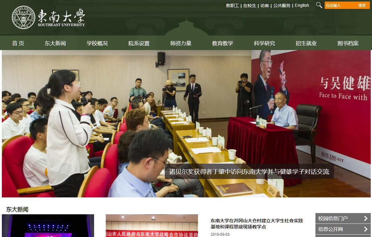 東南大學(xué)是中央直管、教育部直屬的全國重點(diǎn)大學(xué),是“985工程”和“211工程”重點(diǎn)建設(shè)的大學(xué)之一,2017年進(jìn)入一流大學(xué)建設(shè)高校A類名單。學(xué)校坐落于歷史文化名城南京,占地面積5888畝,建有四牌樓、九龍湖、丁家橋等校區(qū)。東南大學(xué)是我國最早建立的高等學(xué)府之一,素有“學(xué)府圣地”和“東南學(xué)府第一流”之美譽(yù)。東南大學(xué)前身是創(chuàng)建于1902年的三江師范學(xué)堂。1921年經(jīng)近代著名教育家郭秉文先生竭力倡導(dǎo),以南京高等師范學(xué)校為基礎(chǔ)正式建立國立東南大學(xué),成為當(dāng)時(shí)國內(nèi)僅有的兩所國立綜合性大學(xué)之一。郭秉文先生出任首任校長,他周咨博訪、廣延名師,數(shù)十位著名學(xué)者、專家薈萃東大,遂有“北大以文史哲著稱、東大以科學(xué)名世”之稱譽(yù)。1928年學(xué)校改名為國立中央大學(xué),設(shè)理、工、醫(yī)、農(nóng)、文、法、教育七個(gè)學(xué)院,學(xué)科之全和規(guī)模之大為全國高校之冠。1952年全國院系調(diào)整,學(xué)校文理等科遷出,以原中央大學(xué)工學(xué)院為主體,先后并入復(fù)旦大學(xué)、交通大學(xué)、浙江大學(xué)、金陵大學(xué)等校的有關(guān)系科,在中央大學(xué)本部原址建立了南京工學(xué)院。1988年5月,學(xué)校復(fù)更名為東南大學(xué),校慶日為每年6月6日(原國立東南大學(xué)校慶日)。2000年4月,原東南大學(xué)、南京鐵道醫(yī)學(xué)院、南京交通高等??茖W(xué)校合并,南京地質(zhì)學(xué)校并入,組建了新的東南大學(xué)。東南大學(xué)不斷探索辦學(xué)、育人之道,積淀了優(yōu)良深厚的歷史傳統(tǒng)。從兩江優(yōu)級(jí)師范學(xué)堂“嚼得菜根,做得大事”的理念,到“民族、民主、科學(xué)”的南高精神;從國立東南大學(xué)“止於至善”的校訓(xùn),到國立中央大學(xué)“誠、樸、雄、偉”之學(xué)風(fēng),到南京工學(xué)院“嚴(yán)謹(jǐn)、求實(shí)、團(tuán)結(jié)、奮進(jìn)”的校風(fēng),百余年來,東南大學(xué)為發(fā)展科學(xué)、振興中華而自強(qiáng)不息、追求卓越的奮斗精神,激勵(lì)著每一個(gè)東大人去創(chuàng)造輝煌的業(yè)績。經(jīng)過115年的創(chuàng)業(yè)發(fā)展,如今的東南大學(xué)已成為一所以工科為主要特色,哲學(xué)、經(jīng)濟(jì)學(xué)、法學(xué)、教育學(xué)、文學(xué)、理學(xué)、工學(xué)、醫(yī)學(xué)、管理學(xué)、藝術(shù)學(xué)等多學(xué)科協(xié)調(diào)發(fā)展的綜合性、研究型大學(xué)。全日制在校生31470人,其中研究生15614人。專任教師2832人,具有博士學(xué)位的教師2314余人,占教師總數(shù)的比例為80%,正、副高級(jí)職稱1935人,博士生指導(dǎo)教師925人,碩士生指導(dǎo)教師2151人,兩院院士12人,歐洲科學(xué)院院士1人,國務(wù)院學(xué)位委員第七屆學(xué)科評(píng)議組成員13人,入選國家“萬人計(jì)劃”專家16人,入選國家“千人計(jì)劃”專家23人,青年千人計(jì)劃26人,“長江學(xué)者獎(jiǎng)勵(lì)計(jì)劃”特聘教授、講座教授45人,長江學(xué)者青年學(xué)者項(xiàng)目10人,國家級(jí)教學(xué)名師獎(jiǎng)獲得者5人,“萬人計(jì)劃”教學(xué)名師3人,國家杰出青年科學(xué)基金獲得者43人,國家“十二五”863計(jì)劃主題專家3人、國家科技計(jì)劃專項(xiàng)專家1人、國家重大專項(xiàng)專家2人,人事部“百千萬人才工程”國家級(jí)人選24人,全國十大青年法學(xué)家2人。目前,學(xué)校設(shè)有30個(gè)院(系),擁有76個(gè)本科專業(yè),30個(gè)博士學(xué)位一級(jí)學(xué)科授權(quán)點(diǎn),49個(gè)碩士學(xué)位一級(jí)學(xué)科授權(quán)點(diǎn),5個(gè)國家一級(jí)重點(diǎn)學(xué)科(涵蓋15個(gè)二級(jí)學(xué)科),5個(gè)國家二級(jí)重點(diǎn)學(xué)科,1個(gè)國家重點(diǎn)(培育)學(xué)科,13個(gè)江蘇高校優(yōu)勢(shì)學(xué)科建設(shè)工程二期項(xiàng)目立項(xiàng)學(xué)科(群),1個(gè)江蘇省重點(diǎn)序列學(xué)科,17個(gè)“十三五”江蘇省重點(diǎn)學(xué)科,30個(gè)博士后科研流動(dòng)站。有3個(gè)國家重點(diǎn)實(shí)驗(yàn)室,3個(gè)國家工程研究中心,2個(gè)國家工程技術(shù)研究中心,11個(gè)教育部重點(diǎn)實(shí)驗(yàn)室,5個(gè)教育部工程研究中心,并以此為依托形成了一批重點(diǎn)科研基地。近年來,學(xué)校大力加強(qiáng)學(xué)科建設(shè),取得豐碩成果。2017年9月,學(xué)校進(jìn)入一流大學(xué)建設(shè)高校A類名單,11個(gè)學(xué)科入選一流學(xué)科名單,包括:材料科學(xué)與工程、電子科學(xué)與技術(shù)、信息與通信工程、控制科學(xué)與工程、計(jì)算機(jī)科學(xué)與技術(shù)、建筑學(xué)、土木工程、交通運(yùn)輸工程、生物醫(yī)學(xué)工程、風(fēng)景園林學(xué)、藝術(shù)學(xué)理論等,入選學(xué)科數(shù)位列全國第8。在教育部學(xué)位與研究生教育發(fā)展中心組織的第四輪學(xué)科評(píng)估中,獲得A+的學(xué)科5個(gè),分別為建筑學(xué)、土木工程、交通運(yùn)輸工程、生物醫(yī)學(xué)工程、藝術(shù)學(xué)理論,獲得A+的學(xué)科數(shù)并列全國高校第8位。工程學(xué)、計(jì)算機(jī)科學(xué)、材料科學(xué)、