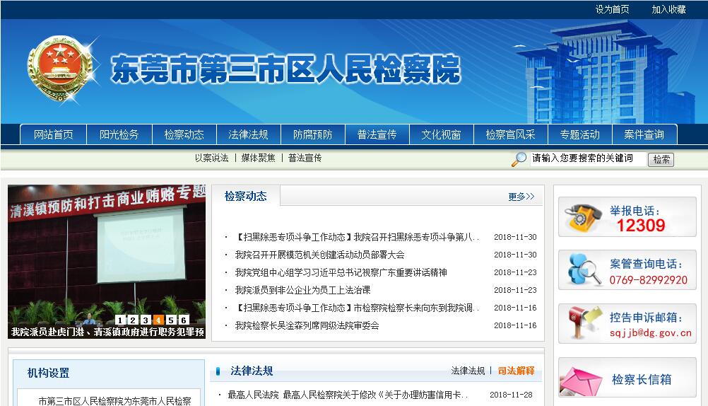 東莞市第三市區(qū)人民檢察院為東莞市人民檢察院的派出機(jī)構(gòu),行使縣一級(jí)人民檢察院的職權(quán),對(duì)市人民檢察院負(fù)責(zé)并報(bào)告工作。其主要職責(zé)是:(一)確定本院檢察工作的規(guī)劃,部署檢察工作任務(wù)。(二)依法對(duì)貪污賄賂犯罪案件,國(guó)家機(jī)關(guān)工作人員瀆職犯罪案件,國(guó)家機(jī)關(guān)工作人員利用職權(quán)實(shí)施的非法拘禁、刑訊逼供、報(bào)復(fù)陷害、非法搜查等侵犯公民人身權(quán)利與民主權(quán)利的犯罪案件,以及國(guó)家機(jī)關(guān)工作人員利用職權(quán)實(shí)施的其他犯罪案件進(jìn)行偵查。(三)依法對(duì)管轄的刑事犯罪案件進(jìn)行審查批準(zhǔn)逮捕、決定逮捕、提起公訴、決定不起訴、出庭支持公訴。(四)依法對(duì)刑事訴訟、民事審判和行政訴訟實(shí)行法律監(jiān)督。(五)對(duì)同級(jí)法院已經(jīng)發(fā)生法律效力、確有錯(cuò)誤的判決和裁定,依法提出抗訴或提請(qǐng)上一級(jí)人民檢察院提出抗訴。(六)受理單位和個(gè)人的報(bào)案、控告、申訴、舉報(bào)工作。(七)負(fù)責(zé)預(yù)防職務(wù)犯罪的法制宣傳,對(duì)國(guó)家機(jī)關(guān)工作人員職務(wù)犯罪預(yù)防工作進(jìn)行研究并提出職務(wù)犯罪的預(yù)防對(duì)策;參與檢察環(huán)節(jié)的社會(huì)治安綜合治理工作。(八)承辦市人民檢察院和市人大常委會(huì)交辦的其它事項(xiàng)。