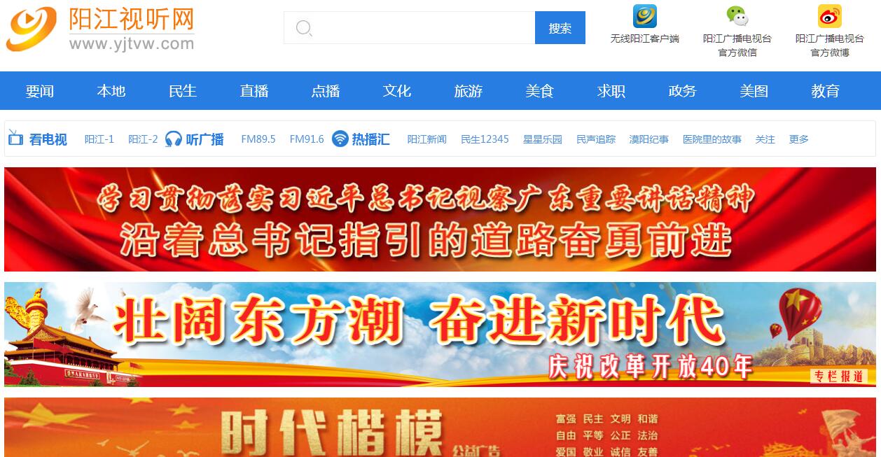 陽江視聽網(wǎng)是陽江廣播電視臺整合優(yōu)勢資源,傾力打造的陽江廣電第四媒體,是陽江地區(qū)唯一實現(xiàn)音、視頻在線直播、點播,實現(xiàn)海量新聞資訊匯集,全天候網(wǎng)民互動的綜合性視聽平臺。陽江廣播電視臺是陽江市人民政府直屬正處級事業(yè)單位,南方影視傳媒集團的成員單位,接受市文化廣電新聞出版行政主管部門行業(yè)管理。由廣播中心、電視中心等11個內(nèi)設(shè)機構(gòu)組成?,F(xiàn)有職工316人。廣播中心節(jié)目類別包括新聞資訊類、娛樂類、音樂類、訪談類等多種類型,主要有《陽江新聞》、《社會多棱鏡》、《916早新聞》、《純“靜”音樂態(tài)度》、《環(huán)球卓聞》、《輕搖滾生活國度》、《至愛午夜場》、《美食美食我愛你》、《飛揚暢想》等重點欄目,采用主持人直播加節(jié)目板塊的形式,思想性、知識性、教育性、服務(wù)性、娛樂性、互動性于一體,增強了節(jié)目的吸引力。廣播中心注重開辟新欄目,打造新的收聽亮點,新欄目《走進陽江》在2013年6月3日正式開播,該節(jié)目由陽江市委宣傳部、廣東電臺新聞臺及陽江臺聯(lián)辦,逢周一至周五上午7:58-8:00、中午12:28-12:30在廣東電臺新聞臺(陽江地區(qū)FM94.0兆赫)播出。節(jié)目多角度、全方位宣傳陽江的經(jīng)濟發(fā)展、法治文化和人文特色。目前陽江電臺收聽率不斷提升,已經(jīng)逐漸確立了本地最具影響力的廣播媒體的地位。電視中心現(xiàn)有電視綜合頻道和公共頻道兩個頻道。綜合頻道以時政新聞、社教專題為主,公共頻道主要以影視劇及娛樂綜藝節(jié)目為依托,以種類經(jīng)濟、文體、生活、旅游、服裝等節(jié)目為主體,具有濃厚的地方特色。在眾多頻道中,陽江臺的收視率始終移居前列,自辦節(jié)目包括《陽江新聞》、《陽江快訊》、《漠陽紀事》、《漠陽民聲》、《黃金劇場》、《美麗旅途》等。2012年,陽江電視節(jié)目再次改版,加大節(jié)目經(jīng)費投入,在打造頻道品牌、創(chuàng)新內(nèi)容、提高收視率上下功夫。目前陽江電視臺的品牌節(jié)目種類齊全,包括新聞、專題、談話類節(jié)目等多個方面。其中最早創(chuàng)辦的電視節(jié)目《陽江新聞》,改版后由原來的15分鐘改為30分鐘,由時政和民生兩個版塊組成,內(nèi)容以時政新聞、動態(tài)新聞、民生新聞、社會新聞以及縣區(qū)、行業(yè)新聞等為主。欄目突出新聞的權(quán)威性、監(jiān)督性、民生性、準確性和及時性,加大新聞的信息量和新聞事件點評,全力發(fā)揮新聞的輿論導向作用,成為本地干部群眾主流信息來源和思想輿論評臺。新增加的《陽江快訊》節(jié)目,作為《陽江新聞》的簡報版本,播報突發(fā)事件以及其他最新動態(tài)消息。特別值得一提的是《漠陽民聲》(原《行風建設(shè)大家談》),是廣東省同類電視節(jié)目的首創(chuàng),把黨內(nèi)監(jiān)督、行政監(jiān)督、新聞輿論監(jiān)督和群眾監(jiān)督融為一體,為社會各界和廣大群眾參與監(jiān)督、評議行風、反映社情民意、解決群眾實際困難和社會熱點問題,提供了一個平等對話、互動交流的平臺。陽江廣播電視臺節(jié)目信號通過無線發(fā)射和有線電視網(wǎng)絡(luò)傳輸,廣播電視信號覆蓋陽江市全境,輻射周邊的茂名市和江門市部分地區(qū),可收視人口400多萬?,F(xiàn)市區(qū)已完成數(shù)字電視整體轉(zhuǎn)換,有線數(shù)字電視用戶11萬戶并已開展寬帶及互動電視等業(yè)務(wù)。