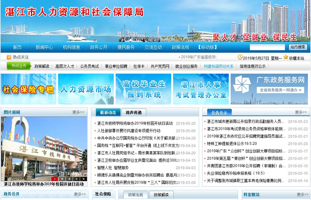 湛江人力資源和社會保障局主要職責(zé):(一)貫徹執(zhí)行國家和省有關(guān)人力資源和社會保障事業(yè)發(fā)展的方針政策和法律法規(guī),擬訂本市人力資源和社會保障事業(yè)發(fā)展規(guī)劃、政策,并組織實施和監(jiān)督檢查。(二)擬訂并組織實施本市人力資源市場發(fā)展規(guī)劃和人力資源流動政策,建立統(tǒng)一規(guī)范的人力資源市場,促進(jìn)人力資源合理流動、有效配置。(三)負(fù)責(zé)促進(jìn)就業(yè)工作,擬訂統(tǒng)籌城鄉(xiāng)的就業(yè)發(fā)展規(guī)劃和政策,完善公共就業(yè)服務(wù)體系,健全就業(yè)援助制度,完善職業(yè)資格制度,統(tǒng)籌建立面向城鄉(xiāng)勞動者的職業(yè)培訓(xùn)制度,負(fù)責(zé)技工學(xué)校管理,牽頭擬訂高校畢業(yè)生就業(yè)政策,會同有關(guān)部門擬訂高技能人才、農(nóng)村實用人才培養(yǎng)和激勵政策。(四)統(tǒng)籌建立覆蓋城鄉(xiāng)的社會保險體系。統(tǒng)籌擬訂城鄉(xiāng)社會保險及其補充保險的配套政策,組織實施統(tǒng)一的社會保險關(guān)系轉(zhuǎn)續(xù)辦法和基礎(chǔ)養(yǎng)老金統(tǒng)籌辦法,組織實施機關(guān)、企事業(yè)單位基本養(yǎng)老保險政策,會同有關(guān)部門擬訂社會保險及其補充保險基金管理和監(jiān)督制度,會同有關(guān)部門編制本市社會保險基金預(yù)決算草案。(五)負(fù)責(zé)就業(yè)、失業(yè)、社會保險基金預(yù)測預(yù)警和信息引導(dǎo),擬訂應(yīng)對預(yù)案,實施預(yù)防、調(diào)節(jié)和控制,保持就業(yè)形勢穩(wěn)定和社會保險基金正常運行。(六)會同有關(guān)部門擬訂機關(guān)、事業(yè)單位人員工資收入分配政策,建立機關(guān)企事業(yè)單位人員工資正常增長和支付保障機制,擬訂機關(guān)企事業(yè)單位人員福利和離退休政策。(七)會同有關(guān)部門指導(dǎo)事業(yè)單位人事制度改革及擬定事業(yè)單位人員和機關(guān)工勤人員管理政策,指導(dǎo)人才管理和開發(fā)工作,制定專業(yè)技術(shù)人員管理和繼續(xù)教育政策,負(fù)責(zé)企事業(yè)單位管理人員繼續(xù)教育管理工作,牽頭推進(jìn)深化職稱制度改革工作,負(fù)責(zé)高層次專業(yè)技術(shù)人才選拔和培養(yǎng)工作。(八)組織實施軍隊轉(zhuǎn)業(yè)干部安置政策,負(fù)責(zé)軍隊轉(zhuǎn)業(yè)干部安置計劃的編制下達(dá)工作,負(fù)責(zé)軍隊轉(zhuǎn)業(yè)干部的安置和教育培訓(xùn)工作,組織擬訂部分企業(yè)軍隊轉(zhuǎn)業(yè)干部解困和穩(wěn)定政策,負(fù)責(zé)自主擇業(yè)軍隊轉(zhuǎn)業(yè)干部管理服務(wù)工作。(九)負(fù)責(zé)行政機關(guān)公務(wù)員和參照公務(wù)員法管理單位工作人員綜合管理,組織實施公務(wù)員法工作,擬訂有關(guān)人員調(diào)配政策和特殊人員安置政策,會同有關(guān)部門擬訂市榮譽制度和政府獎勵制度。(十)會同有關(guān)部門擬訂農(nóng)民工工作綜合性政策和規(guī)劃,推動農(nóng)民工相關(guān)政策的落實,協(xié)調(diào)解決重點難點問題,維護農(nóng)民工合法權(quán)益。(十一)組織實施勞動、人事爭議調(diào)解仲裁制度和勞動關(guān)系政策,完善勞動關(guān)系協(xié)調(diào)機制,組織實施禁止非法使用童工政策和女工、未成年工的特殊勞動保護政策,組織實施勞動監(jiān)察,協(xié)調(diào)勞動者維權(quán)工作,依法查處重大案件。(十二)承辦市人民政府及省人力資源和社會保障廳、省公務(wù)員辦公室交辦的其他事項。
