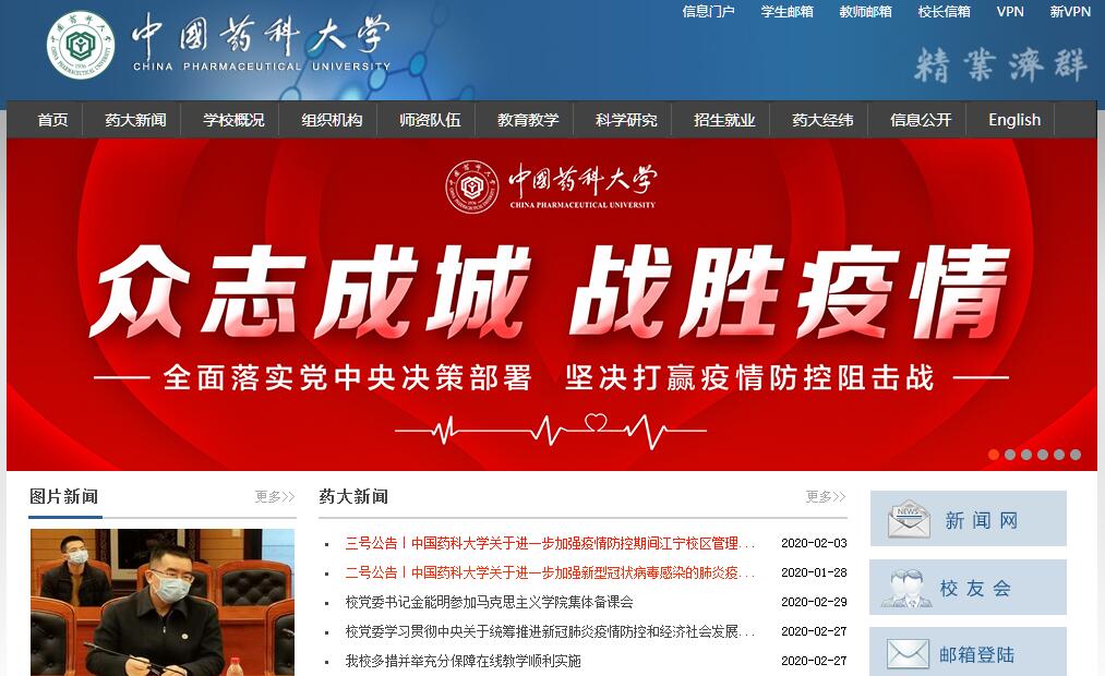 中國藥科大學(xué)坐落于古都南京。是一所歷史悠久、特色鮮明、學(xué)風優(yōu)良、在藥學(xué)界享有盛譽的教育部直屬、國家“211工程”和國家“雙一流”建設(shè)高校(一流學(xué)科),是我國首批具有博士、碩士學(xué)位授予權(quán)的高等學(xué)校之一。中國藥科大學(xué)的前身為國立藥學(xué)??茖W(xué)校(四年制),始建于1936年,是中國歷史上第一所由國家創(chuàng)辦的高等藥學(xué)學(xué)府。建校初期,抗戰(zhàn)爆發(fā),學(xué)校初遷漢口,復(fù)遷重慶,精研學(xué)術(shù),哺育英華。1946年回遷南京。1952年,齊魯大學(xué)藥學(xué)系和東吳大學(xué)藥學(xué)專修科并入學(xué)校,成立華東藥學(xué)院。1955年開始招收研究生。1956年更名為南京藥學(xué)院。1986年與籌建中的南京中藥學(xué)院合并,成立中國藥科大學(xué)。1996年進入國家“211工程”重點建設(shè)的百所高校行列。2000年,學(xué)校由國家藥品監(jiān)督管理局整體劃轉(zhuǎn)教育部管理。2001年,江蘇省藥科學(xué)校并入學(xué)校。2017年9月,躋身國家“雙一流”建設(shè)高校(一流學(xué)科)。80多年來,中國藥科大學(xué)秉承“精業(yè)濟群”的校訓(xùn)精神,以“培育藥界精英、研發(fā)普惠良藥、貢獻幸福生活”為使命,堅持“學(xué)術(shù)第一、師生為本、共生共贏”的理念,興藥為民,榮校報國,努力成為“全球最受尊敬的藥學(xué)高等學(xué)府”。存心以仁,任事以誠,興藥為民,榮校報國,積淀了深厚的文化底蘊,鑄就了獨特的治校品格,現(xiàn)已發(fā)展成為以藥學(xué)為特色,理、工、經(jīng)、管、文等學(xué)科協(xié)調(diào)發(fā)展的多科性大學(xué)?;A(chǔ)設(shè)施學(xué)校全日制在校生16144人,其中本??粕?1833人(本科生11109人,??粕?24人),研究生3976人(碩士3199人,博士777人),留學(xué)生383人。學(xué)?,F(xiàn)有玄武門、江寧2個校區(qū),占地近2200畝。建筑面積近56萬平方米,其中教學(xué)科研行政用房面積27.98萬平方米,圖書館面積3.4萬平方米,學(xué)生宿舍面積20.3萬平方米;運動場地面積8.1萬平方米。圖書館藏書155萬余冊。學(xué)校師資力量雄厚,薈萃了眾多知名的藥學(xué)專家。在職教職工1653人,其中專任教師978人(學(xué)科教師901人,輔導(dǎo)員77人)。專任教師中具有博士、碩士學(xué)位人員占91%;具有正高級專業(yè)技術(shù)職務(wù)170人,副高級專業(yè)技術(shù)職務(wù)318人;博士生導(dǎo)師185人,碩士生導(dǎo)師210人?,F(xiàn)有中國工程院院士2人、德國科學(xué)院院士1人,“長江學(xué)者”6人、“國家杰出青年科學(xué)基金”獲得者5人、“千人計劃”入選者2人、“青年千人計劃”入選者7人、“百千萬人才工程”國家級培養(yǎng)人選5人、教育部新世紀優(yōu)秀人才計劃入選者34人、江蘇省有突出貢獻中青年專家6人、享受國務(wù)院政府特殊津貼50人、“國家級教學(xué)名師”2人、“全國優(yōu)秀教師”2人、江蘇省教學(xué)名師7人;國家自然科學(xué)基金創(chuàng)新研究群體1個、教育部創(chuàng)新團隊2個,國家級教學(xué)團隊3個、省級教學(xué)團隊3個。在歷次教育部學(xué)位與研究生教育發(fā)展中心組織的全國學(xué)科評估中,藥學(xué)、中藥學(xué)學(xué)科排名始終名列前茅。在第四輪學(xué)科評估中,藥學(xué)學(xué)科位列第一檔?,F(xiàn)有藥學(xué)、中藥學(xué)2個一級學(xué)科博士點,24個二級學(xué)科博士點;6個一級學(xué)科碩士點,37個二級學(xué)科碩士點。設(shè)有藥學(xué)、中藥學(xué)2個博士后流動站,可在23個專業(yè)接收博士后人員?,F(xiàn)有藥學(xué)碩士、中藥學(xué)碩士、工程碩士(制藥工程領(lǐng)域)、應(yīng)用統(tǒng)計碩士、公共管理碩士等5個專業(yè)學(xué)位碩士點。藥學(xué)一級學(xué)科為國家一級重點學(xué)科,所覆蓋的藥物化學(xué)、藥劑學(xué)、生藥學(xué)、藥物分析學(xué)、微生物與生化藥學(xué)、藥理學(xué)等6個二級學(xué)科均為國家重點學(xué)科;中藥學(xué)一級學(xué)科為江蘇省國家一級重點學(xué)科培育建設(shè)點,其中中藥化學(xué)二級學(xué)科為國家中醫(yī)藥管理局重點學(xué)科;中西醫(yī)結(jié)合學(xué)科為江蘇省一級重點學(xué)科。藥學(xué)、中藥學(xué)、藥物生物技術(shù)與生物制藥3個學(xué)科獲“江蘇高校優(yōu)勢學(xué)科建設(shè)工程”立項建設(shè)?;瘜W(xué)、工商管理學(xué)科為江蘇省“十三五”重點(培育)學(xué)科,環(huán)境科學(xué)與工程學(xué)科為江蘇省“十三五”重點建設(shè)學(xué)科。2017年,我校藥理與毒理學(xué)、化學(xué)、臨床醫(yī)學(xué)3個學(xué)科領(lǐng)域的ESI排名進入全球前1%。最新數(shù)據(jù)顯示,我校藥理與毒理學(xué)學(xué)科排名跨入全球前1‰,標志著其進入國際先進水平行列。在最新公布的自然指數(shù)排名中,我校排名位居內(nèi)地高校第44位。在上海軟科發(fā)布的2017年ARWU大學(xué)學(xué)術(shù)排名中,學(xué)校藥學(xué)學(xué)科位列全球第51-75位。在2017世界大學(xué)排名中心(CWUR)學(xué)科排行榜,我校藥物化學(xué)學(xué)科位列全球第三位。在2017USNews藥理學(xué)與毒理學(xué)專業(yè)學(xué)科排名中,我校位列全球第40位。在臺灣大學(xué)世界大學(xué)排名中,我校藥理與毒物學(xué)排名全球第31位。根據(jù)2016中國科學(xué)評價研