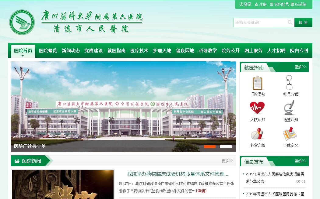 清遠(yuǎn)市人民醫(yī)院,又名廣州醫(yī)科大學(xué)附屬第六醫(yī)院、廣州醫(yī)科大學(xué)第六臨床學(xué)院,始建于1939年,國家首批三級甲等醫(yī)院,全國百佳醫(yī)院,廣東省博士后創(chuàng)新實(shí)踐基地,國家住院醫(yī)師規(guī)范化培訓(xùn)基地,承擔(dān)了涵蓋本科、碩士、博士、博士后、醫(yī)師規(guī)培等完整的大學(xué)醫(yī)學(xué)教育和畢業(yè)后培訓(xùn)任務(wù)。上個世紀(jì)90年代,因創(chuàng)立“優(yōu)質(zhì)高效低耗”醫(yī)院管理模式而成為當(dāng)時全國醫(yī)院改革的一面旗幟。榮獲“全國文明單位”、“全國先進(jìn)基層黨組織”、“全國衛(wèi)生系統(tǒng)先進(jìn)集體”、“全國創(chuàng)建文明行業(yè)先進(jìn)單位”等省級以上榮譽(yù)30余個。2017年通過三級甲等醫(yī)院復(fù)審。醫(yī)院總建筑面積22.3萬平方米,其中新院區(qū)建筑面積15.6萬平方米,占地面積16.5萬平方米。醫(yī)院編制床位數(shù)2560張,實(shí)際開放床位1780張,共設(shè)臨床科室、醫(yī)技科室52個,設(shè)立臨床技能培訓(xùn)中心、臨床生物標(biāo)本庫、臨床藥物一期試驗(yàn)病房、分子診斷中心、基礎(chǔ)實(shí)驗(yàn)研究室、實(shí)驗(yàn)動物房等科教平臺。現(xiàn)有在崗員工2872人,其中高級職稱292人,醫(yī)學(xué)博士57人,博士導(dǎo)師15人,碩士導(dǎo)師31人,享受國務(wù)院政府特殊津貼專家2人,瀟湘學(xué)者2人,嶺南名醫(yī)7人,省杰出青年醫(yī)學(xué)人才7人,清遠(yuǎn)市緊缺適用高層次人才106人,擔(dān)任省級及以上專業(yè)委員會學(xué)術(shù)職務(wù)共268人?,F(xiàn)有中國醫(yī)師協(xié)會心臟病診療基地、衛(wèi)生部腦卒中篩查與防治基地、中國胸痛中心醫(yī)院三個國家級診療基地,擁有婦產(chǎn)科、產(chǎn)科、普通外科、消化內(nèi)科、感染科、耳鼻喉科、眼科、口腔科、腎內(nèi)科、麻醉科、病理科、臨床護(hù)理12個省級臨床重點(diǎn)???,22個清遠(yuǎn)市重點(diǎn)學(xué)科。擁有瑞典林雪平大學(xué)尿控動力學(xué)實(shí)驗(yàn)室、美國邁阿密大學(xué)米勒醫(yī)學(xué)院、中國醫(yī)藥大學(xué)附設(shè)醫(yī)院(臺灣)、廣州醫(yī)科大學(xué)基礎(chǔ)醫(yī)學(xué)院、廣州醫(yī)科大學(xué)神經(jīng)科學(xué)清遠(yuǎn)工作站、廣州呼吸疾病研究所清遠(yuǎn)工作站、廣州婦產(chǎn)科研究所清遠(yuǎn)工作站、廣州醫(yī)科大學(xué)研究生創(chuàng)新培養(yǎng)基地、暨南大學(xué)研究生培養(yǎng)基地、徐州醫(yī)學(xué)院研究生培養(yǎng)基地、廣東省創(chuàng)傷救治科研中心清遠(yuǎn)創(chuàng)傷基地、暨南大學(xué)轉(zhuǎn)化醫(yī)學(xué)研究院等12個大學(xué)合作平臺?,F(xiàn)有固定資產(chǎn)總值14.14億元,擁有PET-CT、320排CT、3.0T核磁共振、DSA、直線加速器等先進(jìn)醫(yī)療設(shè)備3000余臺。2017年,門急診量180.23萬人次;出院人數(shù)8.44萬人次;手術(shù)量5.98萬臺次;CD型病例占比52.18%;三四級手術(shù)占比48.66%?!?017年中國地級城市醫(yī)院競爭力榜單”醫(yī)院排名第55,2016、2017年廣東省公立醫(yī)院績效評價(jià)連續(xù)排名全省第二。醫(yī)院始終堅(jiān)持“以人民健康為中心,一切為了人民健康”的辦院宗旨,按照“全面融入廣州,加強(qiáng)學(xué)科建設(shè);改善就醫(yī)服務(wù),提升就醫(yī)體驗(yàn);加強(qiáng)醫(yī)院管理,提質(zhì)降耗增效;真心幫扶基層,提升基層能力”的發(fā)展思路,全力打造“粵北醫(yī)學(xué)中心,人民心中醫(yī)院”。本著“盡我所能,為身心受到折磨的患者提供關(guān)愛和幫助”的行為準(zhǔn)則,著力建設(shè)一所有良知有溫度有愛心、行業(yè)認(rèn)可、百姓滿意、員工自豪的粵北醫(yī)學(xué)中心。醫(yī)院實(shí)施便民惠民運(yùn)營戰(zhàn)略。即:在保障安全、質(zhì)量和提供優(yōu)質(zhì)、便捷服務(wù)的前提下,合理控制患者醫(yī)療費(fèi)用,同時設(shè)法降低醫(yī)院運(yùn)營成本,提高運(yùn)營效果。患者就醫(yī)成本得到有效控制,2017年,全院藥品占比27.82%,住院患者人均費(fèi)用10,746元,為全省同級醫(yī)院的70%左右,為廣州市同級醫(yī)院的50%左右, 出院病人平均住院床日為7.44天,門診“三長一短”現(xiàn)象已基本消失。2017年人力成本占支出比為37.63%,醫(yī)院運(yùn)營成本控制在合理區(qū)間。大力弘揚(yáng)仁愛精神。2010年5月啟動“天使醫(yī)療行動”,對患先心病等大病的貧困患者實(shí)施專項(xiàng)救助,已累計(jì)籌集資金2000多萬元,救助了2,165名貧困患者,資助金額達(dá)2,155萬元。自2005年派出第一批駐院醫(yī)療隊(duì)至今,共派出15批100多名醫(yī)療骨干,奔赴“三連一陽”地區(qū)進(jìn)行幫扶,幫助基層醫(yī)院提高醫(yī)療服務(wù)能力和管理水平。2014年1月醫(yī)院托管佛岡縣醫(yī)院集團(tuán),2014年11月托管連山壯族瑤族自治縣人民醫(yī)院,建立了以我院為中心的清遠(yuǎn)市遠(yuǎn)程心電、影像、病理診斷中心,成為省內(nèi)、乃至國內(nèi)醫(yī)聯(lián)體建設(shè)的典范。醫(yī)院對危急重癥病人開辟綠色通道,使急性心梗、急性腦卒中等病種的大批危急重癥患者得到了快速有效救治。2017年起醫(yī)院全面推行“先診療后付費(fèi)”服務(wù)模式,成為我省最早實(shí)行此模式的地市級醫(yī)院之一。醫(yī)院