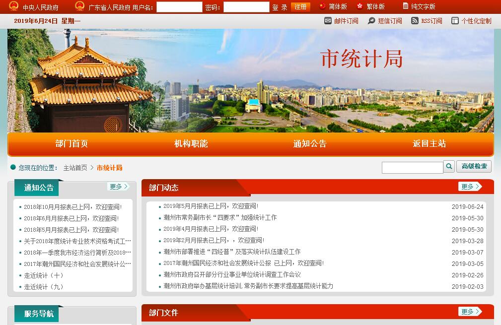 潮州市統(tǒng)計(jì)局主要職責(zé):一、貫徹執(zhí)行國家、省有關(guān)統(tǒng)計(jì)工作的方針政策和法律法規(guī),擬定和實(shí)施統(tǒng)計(jì)工作有關(guān)規(guī)定、規(guī)劃和統(tǒng)計(jì)調(diào)查計(jì)劃;承擔(dān)組織和協(xié)調(diào)全市統(tǒng)計(jì)工作,確保統(tǒng)計(jì)數(shù)據(jù)真實(shí)、準(zhǔn)確、及時(shí)的責(zé)任;監(jiān)督檢查各縣(區(qū))、各部門的統(tǒng)計(jì)和國民經(jīng)濟(jì)核算工作;監(jiān)督檢查統(tǒng)計(jì)法律、法規(guī)的實(shí)施。二、組織實(shí)施國民經(jīng)濟(jì)核算體系和統(tǒng)計(jì)指標(biāo)體系,執(zhí)行國家、省統(tǒng)計(jì)標(biāo)準(zhǔn)和基本統(tǒng)計(jì)報(bào)表制度;核算全市及各縣區(qū)生產(chǎn)總值,監(jiān)督管理全市各縣區(qū)國民經(jīng)濟(jì)核算工作。三、會同有關(guān)部門擬訂重大市情市力普查計(jì)劃、方案,組織實(shí)施全市人口、經(jīng)濟(jì)、農(nóng)業(yè)等重大市情市力普查,匯總、整理和提供有關(guān)市情市力方面的統(tǒng)計(jì)數(shù)據(jù);組織、協(xié)調(diào)城市社會經(jīng)濟(jì)、農(nóng)村社會經(jīng)濟(jì)和企業(yè)等各項(xiàng)調(diào)查;匯總、整理全市的基本統(tǒng)計(jì)資料;對國民經(jīng)濟(jì)、科技進(jìn)步、社會發(fā)展等情況進(jìn)行統(tǒng)計(jì)分析、統(tǒng)計(jì)預(yù)測和統(tǒng)計(jì)監(jiān)督。四、組織實(shí)施農(nóng)林牧漁業(yè)、工業(yè)、建筑業(yè)、批發(fā)和零售業(yè)、住宿和餐飲業(yè)、房地產(chǎn)業(yè)等統(tǒng)計(jì)調(diào)查,收集、匯總、整理和提供有關(guān)調(diào)查的統(tǒng)計(jì)數(shù)據(jù),綜合整理和提供地質(zhì)勘查、旅游、對外經(jīng)濟(jì)、交通運(yùn)輸、郵政、教育、衛(wèi)生、社會保障、公用事業(yè)等全市性基本統(tǒng)計(jì)數(shù)據(jù)。五、組織實(shí)施能源、投資、科技、人口、勞動(dòng)力、投入產(chǎn)出、社會發(fā)展基本情況等統(tǒng)計(jì)調(diào)查,收集、匯總、整理和提供有關(guān)調(diào)查的統(tǒng)計(jì)數(shù)據(jù)。對全市各縣區(qū)主要耗能行業(yè)節(jié)能和重點(diǎn)耗能企業(yè)能源使用、節(jié)約以及資源循環(huán)利用狀況的統(tǒng)計(jì)監(jiān)測;加強(qiáng)對重點(diǎn)耗能企業(yè)節(jié)能工作的跟蹤、指導(dǎo)和監(jiān)管;進(jìn)行相關(guān)統(tǒng)計(jì)分析;配合節(jié)能主管部門開展節(jié)能目標(biāo)考核;依法進(jìn)行節(jié)能調(diào)查、統(tǒng)計(jì)執(zhí)法和數(shù)據(jù)發(fā)布。六、對國民經(jīng)濟(jì)、社會發(fā)展等情況進(jìn)行統(tǒng)計(jì)分析、統(tǒng)計(jì)預(yù)測和統(tǒng)計(jì)監(jiān)督,向市委、市政府及有關(guān)部門提供統(tǒng)計(jì)信息和咨詢建議。七、依法審批或者備案全市各縣區(qū)、各部門統(tǒng)計(jì)調(diào)查項(xiàng)目,指導(dǎo)專業(yè)統(tǒng)計(jì)基礎(chǔ)工作、統(tǒng)計(jì)基層業(yè)務(wù)、統(tǒng)計(jì)基礎(chǔ)建設(shè),組織建立服務(wù)業(yè)統(tǒng)計(jì)信息共享和發(fā)布制度,建立健全統(tǒng)計(jì)數(shù)據(jù)質(zhì)量審核、監(jiān)控和評估制度,開展對重要統(tǒng)計(jì)數(shù)據(jù)的審核、監(jiān)控和評估,依法監(jiān)督管理全市涉外調(diào)查活動(dòng)。八、指導(dǎo)全市統(tǒng)計(jì)專業(yè)技術(shù)隊(duì)伍建設(shè),會同有關(guān)部門組織管理全市統(tǒng)計(jì)專業(yè)技術(shù)資格考試、職務(wù)評聘、從業(yè)資格認(rèn)定工作,會同有關(guān)部門監(jiān)督管理全市縣級以上政府統(tǒng)計(jì)部門由中央、省級財(cái)政提供的統(tǒng)計(jì)經(jīng)費(fèi)和專項(xiàng)基本建設(shè)投資。九、建立健全和管理統(tǒng)計(jì)信息自動(dòng)化系統(tǒng)和統(tǒng)計(jì)數(shù)據(jù)庫體系;指導(dǎo)各縣區(qū)統(tǒng)計(jì)數(shù)據(jù)庫和網(wǎng)絡(luò)的基本標(biāo)準(zhǔn)和運(yùn)行規(guī)則的實(shí)施工作,指導(dǎo)全市統(tǒng)計(jì)信息化系統(tǒng)建設(shè)。十、指導(dǎo)統(tǒng)計(jì)基層建設(shè)和統(tǒng)計(jì)基礎(chǔ)工作規(guī)范化建設(shè);管理屬下事業(yè)單位。十一、承辦市委、市政府和上級主管部門交辦的其他事項(xiàng)。
