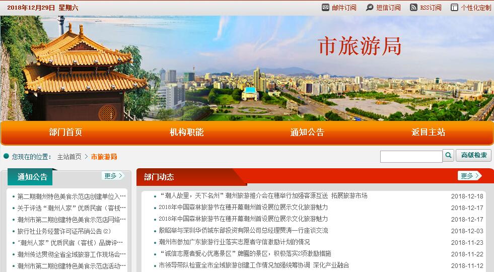 潮州市旅游局主要職責(zé):(一)貫徹執(zhí)行國家、省有關(guān)旅游工作的法律法規(guī)和方針政策,協(xié)調(diào)全市旅游業(yè)改革與發(fā)展工作;起草有關(guān)規(guī)范性文件,制訂全市旅游發(fā)展戰(zhàn)略、規(guī)劃、政策,經(jīng)批準(zhǔn)后組織實施;指導(dǎo)各區(qū)縣旅游工作。(二)研究和推進旅游綜合改革;協(xié)調(diào)旅游安全、旅游應(yīng)急救援、節(jié)假日旅游、紅色旅游、旅游扶貧等工作,引導(dǎo)休閑度假,協(xié)調(diào)和推動國民旅游休閑計劃實施;監(jiān)測旅游經(jīng)濟運行,負(fù)責(zé)全市旅游統(tǒng)計工作及行業(yè)信息發(fā)布。(三)會同有關(guān)部門編制發(fā)展旅游產(chǎn)業(yè)的中、長期規(guī)劃和年度計劃;組織對全市旅游資源的普查、保護、開發(fā)與利用工作;引導(dǎo)旅游業(yè)社會投資,引導(dǎo)旅游產(chǎn)品發(fā)開和旅游制造業(yè)發(fā)展;指導(dǎo)重點旅游區(qū)域、景區(qū)景點和旅游產(chǎn)品的規(guī)劃與建設(shè),指導(dǎo)旅游景區(qū)開展質(zhì)量等級評定工作。(四)制訂和組織實施開拓國內(nèi)、國際旅游客源市場的規(guī)劃、計劃;組織協(xié)調(diào)潮州旅游整體形象的對外宣傳和促銷推廣活動;開發(fā)推廣旅游市場和旅游線路;負(fù)責(zé)國內(nèi)、國際旅游交流與合作事務(wù)。(五)負(fù)責(zé)旅游行業(yè)管理工作,依法負(fù)責(zé)有關(guān)旅游業(yè)務(wù)的審核、審批工作和出入境旅游管理工作;牽頭開展旅游綜合執(zhí)法工作,負(fù)責(zé)監(jiān)督管理旅游市場秩序和服務(wù)質(zhì)量;組織實施旅游區(qū)、旅游設(shè)施、旅游服務(wù)、旅游產(chǎn)品等行業(yè)標(biāo)準(zhǔn)工作,指導(dǎo)旅游飯店評定星級工作;指導(dǎo)旅游行業(yè)精神文明建設(shè)和誠信體系建設(shè);指導(dǎo)行業(yè)組織的業(yè)務(wù)工作。(六)組織制訂和實施旅游信息化建設(shè)發(fā)展規(guī)劃,推動旅游與信息化融合發(fā)展;會同有關(guān)部門推進旅游公共服務(wù)體系規(guī)劃、建設(shè)和管理工作,推進旅游產(chǎn)業(yè)與各個產(chǎn)業(yè)的融合發(fā)展,組織指導(dǎo)和促進旅游產(chǎn)品(商品)的開發(fā)。(七)制訂并組織實施旅游人才規(guī)劃,組織指導(dǎo)旅游教育培訓(xùn)工作;會同有關(guān)部門指導(dǎo)實施旅游從業(yè)人員職業(yè)資格標(biāo)準(zhǔn)和等級標(biāo)準(zhǔn)工作;負(fù)責(zé)全市導(dǎo)游人員的管理工作。(八)承擔(dān)市旅游產(chǎn)業(yè)發(fā)展協(xié)調(diào)領(lǐng)導(dǎo)小組的日常工作。(九)管理屬下事業(yè)單位。(十)承辦市委、市政府和上級有關(guān)部門交辦的其他事項。