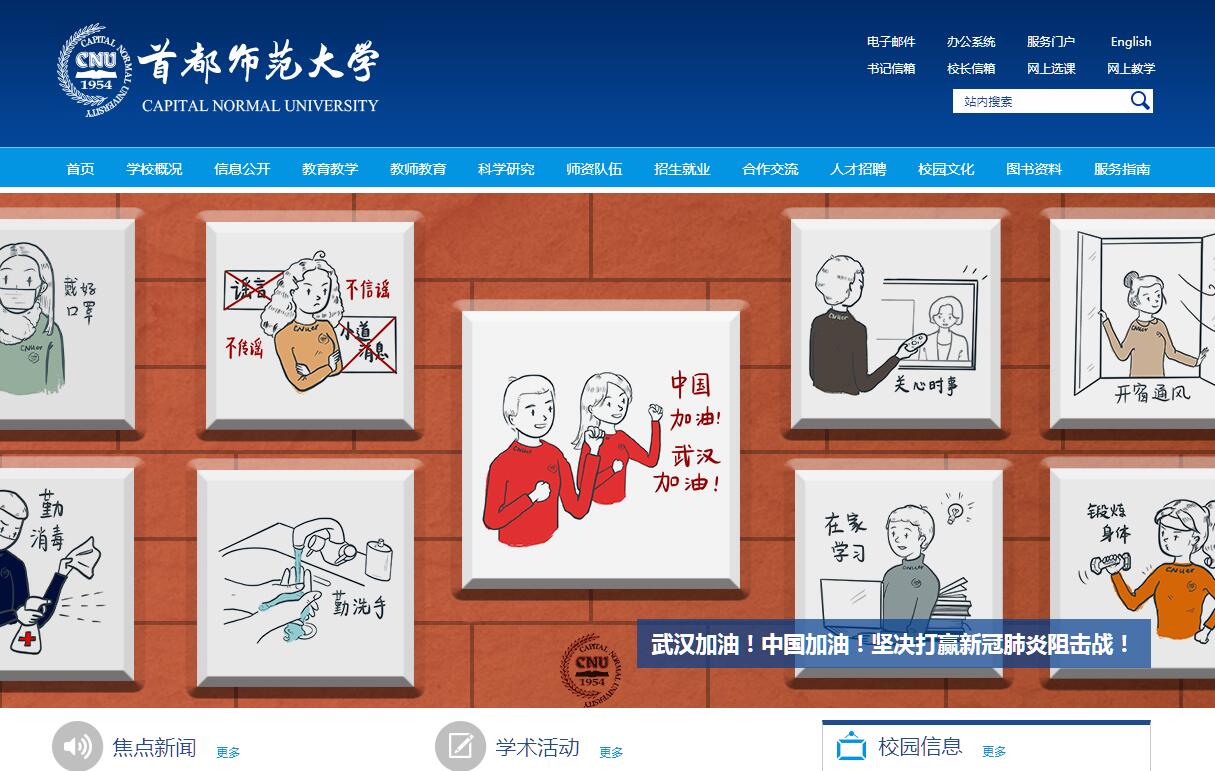 首都師范大學(xué)建于1954年,辦學(xué)歷史可追溯至1905年成立的通州師范,是國家”雙一流”建設(shè)高校、北京市與教育部“省部共建”高校。學(xué)校現(xiàn)有學(xué)科專業(yè)涵蓋文、理、工、管、法、教育、外語、藝術(shù)等,六十多年來已培養(yǎng)各類高級專門人才二十余萬名,是北京市人才培養(yǎng)的重要基地。學(xué)校現(xiàn)有博士學(xué)位授權(quán)一級學(xué)科17個(gè),博士點(diǎn)101個(gè),博士后流動(dòng)站16個(gè),碩士學(xué)位授權(quán)一級學(xué)科25個(gè),碩士點(diǎn)145個(gè),專業(yè)學(xué)位類別10個(gè)。國家重點(diǎn)學(xué)科4個(gè),國家重點(diǎn)培育學(xué)科1個(gè),北京市一級重點(diǎn)學(xué)科8個(gè),北京市二級重點(diǎn)學(xué)科12個(gè),北京市一級重點(diǎn)建設(shè)學(xué)科2個(gè),北京市二級重點(diǎn)建設(shè)學(xué)科13個(gè),北京市一級重點(diǎn)培育學(xué)科4個(gè),交叉學(xué)科北京市重點(diǎn)學(xué)科2個(gè);1個(gè)省部共建國家重點(diǎn)實(shí)驗(yàn)室培育基地,2個(gè)教育部重點(diǎn)實(shí)驗(yàn)室,1個(gè)教育部省屬高校人文社會科學(xué)重點(diǎn)研究基地,1個(gè)教育部工程研究中心,1個(gè)民政部重點(diǎn)實(shí)驗(yàn)室,1個(gè)國家級實(shí)驗(yàn)教學(xué)示范中心,1個(gè)國家虛擬仿真實(shí)驗(yàn)教學(xué)中心,1個(gè)國家國際科技合作基地,1個(gè)國家語委科研基地,1個(gè)北京市高校高精尖創(chuàng)新中心,1個(gè)北京實(shí)驗(yàn)室,11個(gè)北京市重點(diǎn)實(shí)驗(yàn)室,2個(gè)北京市高等學(xué)校工程研究中心,1個(gè)北京市工程技術(shù)研究中心,1個(gè)北京市工程實(shí)驗(yàn)室,1個(gè)北京市社會科學(xué)與自然科學(xué)協(xié)同創(chuàng)新研究基地,4個(gè)北京高等學(xué)校市級校外人才培養(yǎng)基地,7個(gè)北京市實(shí)驗(yàn)教學(xué)示范中心,9個(gè)省、部級設(shè)置的研究(院、所、中心)、實(shí)驗(yàn)室。學(xué)校下設(shè)文學(xué)院、歷史學(xué)院、政法學(xué)院、教育學(xué)院、外國語學(xué)院、馬克思主義學(xué)院、管理學(xué)院、音樂學(xué)院、美術(shù)學(xué)院、數(shù)學(xué)科學(xué)學(xué)院、物理系、化學(xué)系、生命科學(xué)學(xué)院、資源環(huán)境與旅游學(xué)院、信息工程學(xué)院、教育技術(shù)系、初等教育學(xué)院、學(xué)前教育學(xué)院、燕都學(xué)院、良鄉(xiāng)校區(qū)基礎(chǔ)學(xué)部、繼續(xù)教育學(xué)院、國際文化學(xué)院、京疆學(xué)院、中國書法文化研究院、文化研究院、中國國學(xué)教育學(xué)院、首都基礎(chǔ)教育發(fā)展研究院、地球空間信息科學(xué)與技術(shù)國際化示范學(xué)院、心理學(xué)院、教師教育學(xué)院等30個(gè)院系以及大學(xué)英語教研部、體育教研部。共有專科專業(yè)1個(gè),本科專業(yè)57個(gè)。各類學(xué)生總數(shù) 29,673人。其中,全日制貫通培養(yǎng)生197人,??粕?84人,本科生10,871人,碩士研究生6,706人,博士研究生786人,成人教育學(xué)生10,088人,外國留學(xué)生741人,已形成從??粕奖究粕?、碩士生、博士生及博士后,從全日制到成人教育、留學(xué)生教育全方位、多層次的辦學(xué)格局和教育體系。學(xué)校現(xiàn)有教職工2,496人,在1,614名專任教師中正高職稱人數(shù)343人,副高職稱人數(shù)640人,博士998人,碩士505人,擁有碩士及以上學(xué)位教師占專任教師總數(shù)的93%。目前學(xué)校已擁有一批在國內(nèi)外有一定影響的專家、學(xué)者。在校工作的中國科學(xué)院、工程院院士7人,俄羅斯工程院院士1人,俄羅斯自然科學(xué)院院士1人,國務(wù)院學(xué)位委員會學(xué)科評議組成員4人,國家教育部學(xué)科教學(xué)指導(dǎo)委員會委員13人,入選國家“千人計(jì)劃”項(xiàng)目4人,“萬人計(jì)劃”領(lǐng)軍人才9人,“萬人計(jì)劃”青年拔尖2人,教育部“長江學(xué)者獎(jiǎng)勵(lì)計(jì)劃”特聘教授12人,教育部“長江學(xué)者獎(jiǎng)勵(lì)計(jì)劃”講座教授1人,國家杰出青年基金資助者11人,入選全國文化名家暨“四個(gè)一批”人才5人,入選北京市文化名家暨“四個(gè)一批”人才12人,國家級百千萬人才12人,入選“北京學(xué)者計(jì)劃”5人,首都科技領(lǐng)軍人才培養(yǎng)工程2人,入選北京市海外人才聚集工程19人,入選北京市特聘教授支持計(jì)劃24人,入選北京市高層次人才引進(jìn)資助計(jì)劃17人,北京市創(chuàng)新團(tuán)隊(duì)建設(shè)計(jì)劃19人,北京市科技新星39人,入選青年拔尖人才培養(yǎng)計(jì)劃96人,入選長城學(xué)者培養(yǎng)計(jì)劃15人,教育部創(chuàng)新團(tuán)隊(duì)3個(gè)。學(xué)校另有64名教師榮獲曾憲梓高師教師獎(jiǎng)、霍英東青年教師教學(xué)獎(jiǎng)和科研獎(jiǎng)。學(xué)校在2003年接受教育部本科教學(xué)工作水平評估中,被評為“本科教學(xué)工作優(yōu)秀學(xué)?!薄=刂聊壳?,學(xué)校共有國家級特色專業(yè)7個(gè),北京市級特色專業(yè)10個(gè);國家級教學(xué)團(tuán)隊(duì)6個(gè),北京市級教學(xué)團(tuán)隊(duì)8個(gè);國家級人才培養(yǎng)模式創(chuàng)新實(shí)驗(yàn)區(qū)3個(gè);市級人才培養(yǎng)模式創(chuàng)新試驗(yàn)區(qū)1個(gè);1個(gè)國家級大學(xué)生校外實(shí)踐教育