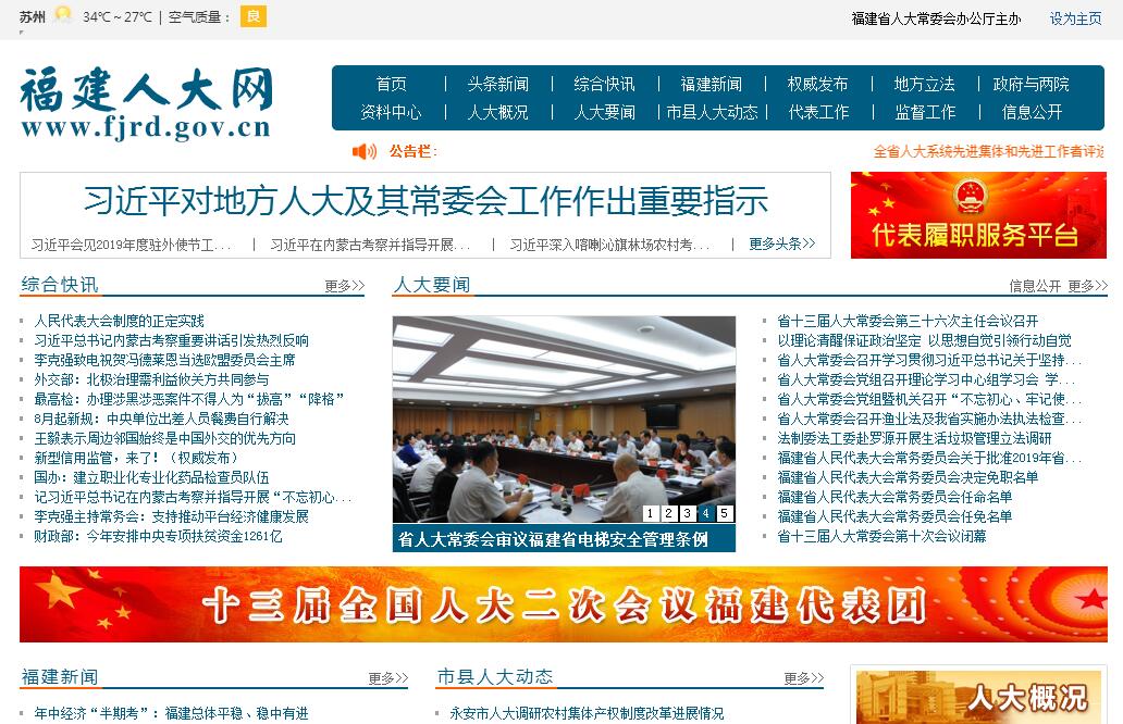 福建省人民代表大會及其常務(wù)委員會是福建省的政府機(jī)關(guān)?!吨腥A人民共和國憲法》規(guī)定,地方各級人民代表大會是地方國家權(quán)力機(jī)關(guān)??h級以上的地方各級人大常委會,是本級人民代表大會即地方國家權(quán)力機(jī)關(guān)的常設(shè)機(jī)關(guān)?!兜胤礁骷壢嗣翊泶髸偷胤礁骷壢嗣裾M織法》規(guī)定,縣級以上的地方各級人民代表大會行使 15 項職權(quán),各級人民代表大會常務(wù)委員會行使 14 項職權(quán)。人大及其常委會的主要職權(quán)通常又被概括為“四權(quán)”:立法權(quán)、監(jiān)督權(quán)、重大事項決定權(quán)和人事選舉任免權(quán)。立法權(quán)。自福建省人大及其常委會于 1979 年、福州市人大及其常委會于 1982 年、廈門市人大及其常委會于 1994 年分別擁有地方立法權(quán)以來,我省形成了省級立法、較大的市立法和特區(qū)立法組成的地方立法格局。近三十年來,省人大及其常委會切實加強(qiáng)立法工作,提高立法質(zhì)量,堅持把立法同改革發(fā)展穩(wěn)定的重大決策緊密結(jié)合起來,根據(jù)地方立法“不抵觸、有地方特色和時代精神、可操作”的要求,適時制定和完善有關(guān)地方性法規(guī),有力地保障和促進(jìn)了我省改革開放和各項事業(yè)的發(fā)展。從 1979 年底至 2008 年 5 月,共審議通過地方性法規(guī) 242 項,修改地方性法規(guī) 97 項,廢止地方性法規(guī) 58 項,現(xiàn)行有效地方性法規(guī) 184 項;福州市人大及其常委會制定的現(xiàn)行有效地方性法規(guī) 60 項;廈門市人大及其常委會制定的現(xiàn)行有效地方性法規(guī) 73 項,其中,經(jīng)濟(jì)特區(qū)法規(guī) 53 項,較大的市法規(guī) 20 項。監(jiān)督權(quán)。人大監(jiān)督工作可分為法律監(jiān)督、工作監(jiān)督。法定監(jiān)督方式主要包括視察、聽取和審議工作報告、執(zhí)法檢查、詢問、質(zhì)詢、撤職、罷免、特定問題調(diào)查、預(yù)算審查監(jiān)督、規(guī)范性文件的備案審查等。近三十年來,省人大及其常委會根據(jù)憲法法律賦予的職權(quán),就經(jīng)濟(jì)社會發(fā)展中的一些重大問題、人民群眾普遍關(guān)心的問題和社會反映強(qiáng)烈的問題,開展形式多樣的監(jiān)督活動。先后聽取和審議一府兩院的工作報告 500 多項,對 200 多部法律法規(guī)的執(zhí)行情況進(jìn)行了檢查監(jiān)督,解決了法律法規(guī)實施中的一些重要問題。省人大在運用質(zhì)詢等具有較強(qiáng)約束力的監(jiān)督形式方面也有一些成功的實踐。重大事項決定權(quán)。人大常委會集體行使職權(quán)、集體決定問題。將地方重大事項和黨的主張通過法定程序成為國家意志,既可以有效地減少地方重大事項決策的失誤,也可以使決策真正體現(xiàn)本行政區(qū)域人民群眾的意志和利益。這也是加強(qiáng)和改善黨的領(lǐng)導(dǎo),實現(xiàn)人民當(dāng)家作主的重要環(huán)節(jié)。近三十年來,省人大及其常委會緊緊圍繞中心、服務(wù)大局,根據(jù)經(jīng)濟(jì)、政治、文化建設(shè)的需要,認(rèn)真行使重大事項決定權(quán),共作出了 310 多項決議決定。如 2005 年初,省人大常委會提請省十屆人大三次會議作出了關(guān)于促進(jìn)海峽西岸經(jīng)濟(jì)區(qū)建設(shè)的決定,把省委的決策轉(zhuǎn)化為全省人民的意志,進(jìn)一步明確我省各級國家機(jī)關(guān)的職責(zé),更好地凝聚各方面的智慧和力量,促進(jìn)了海峽西岸經(jīng)濟(jì)區(qū)建設(shè)。人事選舉任免權(quán)。依照法定的權(quán)限與程序,選舉、任命和免去本級國家權(quán)力機(jī)關(guān)的常設(shè)機(jī)關(guān)以及行政機(jī)關(guān)、審判機(jī)關(guān)、檢察機(jī)關(guān)成員的公職,這是人民當(dāng)家作主的重要體現(xiàn),是管理地方國家事務(wù)的重要保證。選舉權(quán)屬于省人民代表大會。任免權(quán)屬于省人大常委會。省人大及其常委會對由其產(chǎn)生的國家機(jī)關(guān)工作人員,有罷免、免職、撤職和接受辭職四種去職方式。近三十年來,根據(jù)憲法和法律的規(guī)定,地方選舉工作進(jìn)行了改革與完善,實行縣、鄉(xiāng)兩級人大代表直接選舉;實行選民、代表聯(lián)合提名候選人;實行普遍差額選舉。在依法做好選舉工作的同時,省人大常委會還認(rèn)真做好人事任免工作。近三十年來,共任免人大機(jī)關(guān)工作人員 290 多人次,政府組成人員 590 多人次,審判人員 1140 多人次,檢察人員 1570 多人次,為地方國家機(jī)關(guān)的正常運轉(zhuǎn)和我省改革發(fā)展穩(wěn)定提供了組織保證。省人大及其常委會還對如何行使好選舉任免權(quán)進(jìn)行了積極探索與完善。