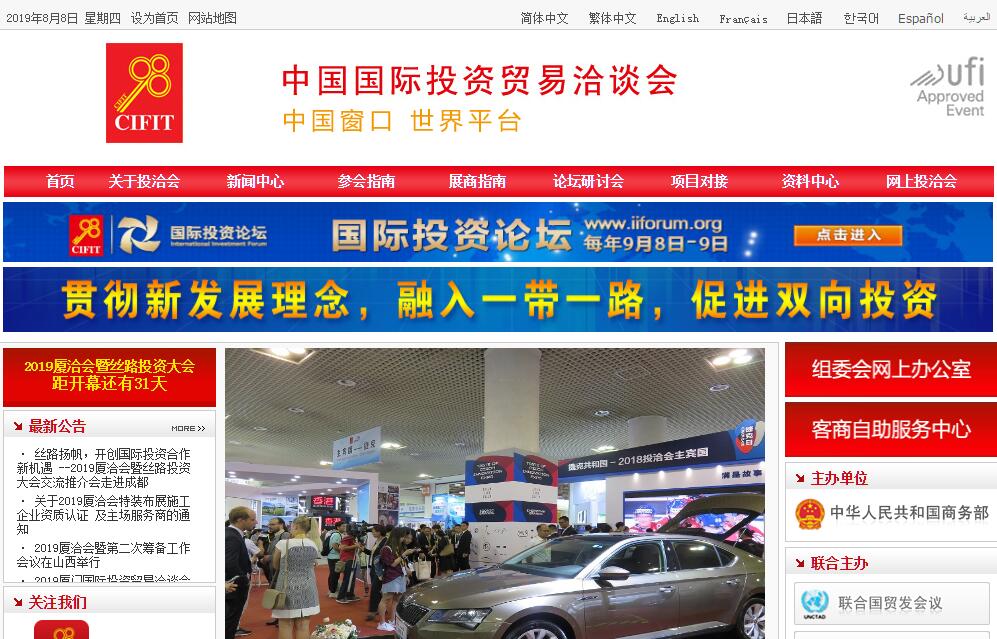 中國國際投資貿(mào)易洽談會(簡稱“投洽會”)經(jīng)中華人民共和國國務(wù)院批準,于每年9月8日至11日在中國廈門舉辦。投洽會以“引進來”和“走出去”為主題,以“突出全國性和國際性,突出投資洽談和投資政策宣傳,突出國家區(qū)域經(jīng)濟協(xié)調(diào)發(fā)展,突出對臺經(jīng)貿(mào)交流”為主要特色,是中國目前唯一以促進雙向投資為目的的國際投資促進活動,也是通過國際展覽業(yè)協(xié)會(UFI)認證的全球規(guī)模最大的投資性展覽會。投洽會主要內(nèi)容包括:投資和貿(mào)易展覽、國際投資論壇及系列投資熱點問題研討會和以項目對接會為載體的投資洽談。投洽會不僅全面展示和介紹中國及中國大陸各省、自治區(qū)、直轄市和香港特別行政區(qū)、澳門特別行政區(qū)的投資環(huán)境、投資政策、招商項目和企業(yè)產(chǎn)品,同時也吸引了數(shù)十個國家和地區(qū)的投資促進機構(gòu)紛紛前來參展并舉辦投資說明會、推介會。參加投洽會的境內(nèi)外客商可以花最少的時間和精力全面考察中國各地和其他國家和地區(qū)的投資環(huán)境,從最直接的渠道獲取最新的投資政策和投資資訊,在最廣泛的范圍內(nèi)選擇最合適的投資項目和投資合作伙伴。
