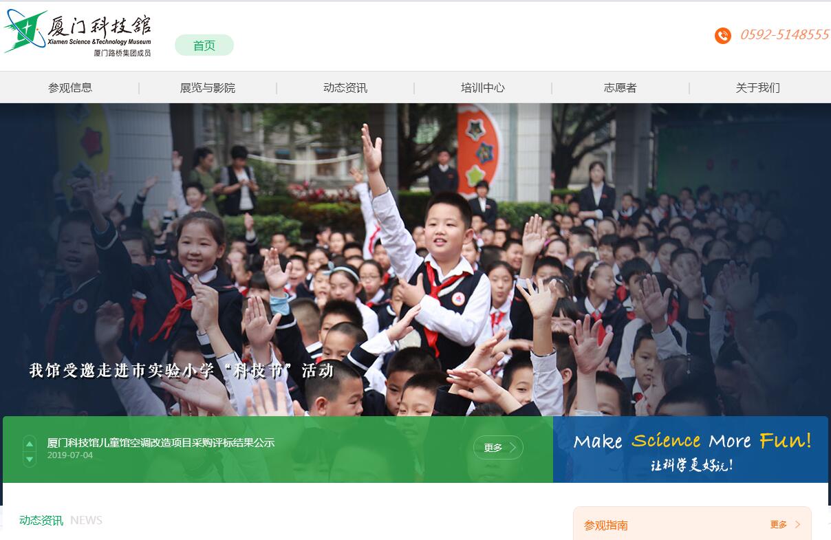 廈門科技館管理有限公司是以提高公眾科學(xué)文化素質(zhì)為目的,面向公眾開展科普教育活動的科普教育基地,是實(shí)施科教興國戰(zhàn)略的基礎(chǔ)設(shè)施,是廈門科技和科普事業(yè)必不可少的重要組成部分。她將秉承“弘揚(yáng)科學(xué)精神,普及科學(xué)知識,傳播科學(xué)思想和科學(xué)方法”的建館宗旨,成為廈門市展示“文化之城、藝術(shù)之城、科技之城”的重要窗口之一。2007年3月16日,廈門科技館正式開館。她是廈門文化藝術(shù)中心的重要組成部分,與圖書館、藝術(shù)館、博物館共同構(gòu)成廈門文化藝術(shù)中心。她北臨仙岳路,南瀕體育路,西南與體育中心毗鄰,占地面積17000平方米,展廳面積10000平方米,四面交通便捷,環(huán)境優(yōu)美。廈門科技館以“人·科技·和諧” 為主線設(shè)置了五大展館,分別是“海洋·搖籃”展館、“探索·發(fā)現(xiàn)”展館、“創(chuàng)造·文明”展館、“和諧·發(fā)展”展館、“兒童·未來”展館,共計300余項互動展品,擁有多項省內(nèi)乃至國內(nèi)第一的展項,并建成福建省第一座4D立體動感影院。廈門科技館是省內(nèi)一流、國內(nèi)先進(jìn)的綜合性科技館。廈門科技館的主要功能是展覽教育、培訓(xùn)教育和實(shí)驗(yàn)教育,其中以展覽教育為核心,結(jié)合培訓(xùn)教育和實(shí)驗(yàn)教育,使觀眾領(lǐng)悟科學(xué)的真諦。她不同于學(xué)校的課堂教育,不拘泥于知識的系統(tǒng)性,更注重科學(xué)精神、科學(xué)思想和科學(xué)方法的培養(yǎng)和創(chuàng)新能力的聚集。在教育形式上擯棄死板的說教而采用生動形象的寓教于樂、自主學(xué)習(xí)的方法,鼓勵觀眾動手參與,在啟發(fā)式教育中領(lǐng)悟科學(xué)的精髓?!白尮娎斫饪茖W(xué)”是國內(nèi)外科技館工作者一貫倡導(dǎo)的思想,這在廈門科技館得到了深入的實(shí)踐。廈門科技館面向所有公眾,貼近他們的精神需求,同時,緊扣時代脈搏,關(guān)注社會熱點(diǎn),讓所有年齡層次和知識結(jié)構(gòu)的人們在這里都能找到他們感興趣和想得到的東西。