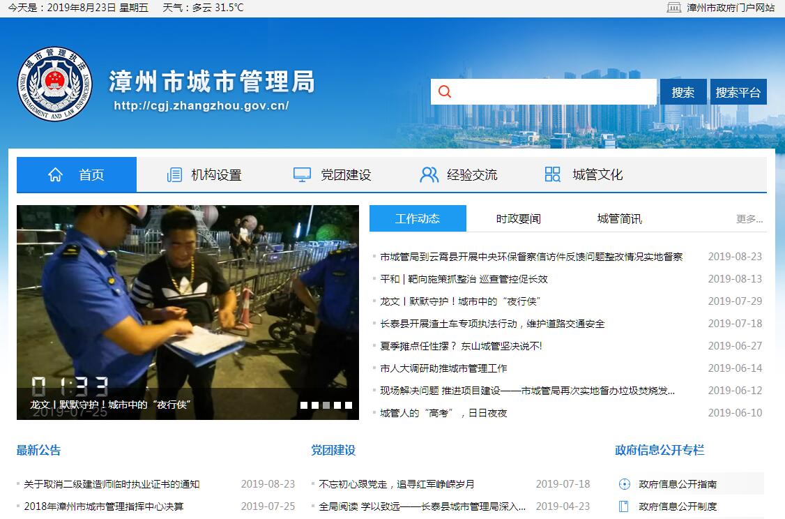 漳州是福建省最南端的一個地級市,介于廈門和汕頭兩個經(jīng)濟(jì)特區(qū)之間,與臺灣隔海相望。漳州既是一座擁有1300多年歷史的文化名城,也是一個正在崛起的沿海開放型城市。全市現(xiàn)轄八縣兩區(qū)一市,土地面積1.26萬平方公里,戶籍人口470萬,市區(qū)規(guī)劃面積100平方公里,現(xiàn)常住人口42萬。漳州農(nóng)業(yè)與生態(tài)得天獨(dú)厚,是全國的水果之鄉(xiāng)、花卉之都、水產(chǎn)基地。近年來,漳州市先后榮獲中國優(yōu)秀旅游城市、全國創(chuàng)建精神文明工作先進(jìn)城市、國家園林城市、首屆省級文明城市等稱號。與全國有關(guān)地市一樣,漳州市開展相對集中行政處罰權(quán)工作,是一個迫切而又勢在必行的問題。從漳州市委、市政府的認(rèn)識上,加強(qiáng)城市管理,提高城市品位,這不僅僅是沿海開放城市社會發(fā)展的內(nèi)在需要,也是推動海峽西岸經(jīng)濟(jì)區(qū)建設(shè)的外在要求。因此,2005年3月,市長何錦龍在漳州市人大會上明確提出要“健全、完善城市管理體制,推進(jìn)創(chuàng)衛(wèi)活動,建立城市管理的長效機(jī)制”,并組建調(diào)研小組,開展對外學(xué)習(xí),借鑒省內(nèi)外各城市實(shí)施相對集中行政處罰權(quán)的成功經(jīng)驗(yàn),下大決心向省政府申報我市開展城市管理相對集中行政處罰權(quán)工作。從此,漳州市城市管理行政執(zhí)法局拉開了籌建的序幕。為成立漳州市城市管理行政執(zhí)法局,市委、市政府從2005年下半年開始進(jìn)行緊鑼密鼓地醞釀。同年8月,市委常委會專題研究籌建工作;9月24日得到福建省人民政府辦公廳的函復(fù),同意我市成立城市管理行政執(zhí)法局。2006年5月28日,我市開展相對集中行政處罰權(quán)工作正式得到省政府的批復(fù);同年10月31日,漳州市人民政府發(fā)出漳政綜〔2006〕148號文件《關(guān)于開展城市管理相對集中行政處罰權(quán)工作的決定》,我局宣告正式成立。我局從醞釀、申報到審批歷經(jīng)19個月,機(jī)構(gòu)性質(zhì)為行政事業(yè)機(jī)關(guān),系市政府的工作部門,正處級建制,核定行政編制18名(其中2名工勤人員)及參照公務(wù)員管理的事業(yè)編制132名,合計總編制為150名。內(nèi)設(shè)機(jī)構(gòu)設(shè)有辦公室、法制科、協(xié)調(diào)科(加掛廣告科)、督查科(加掛城管執(zhí)法指揮中心)4個正科級職能科室,市公安局還在我局設(shè)立治安辦協(xié)調(diào)處理阻礙公務(wù)、暴力抗法的案件。下設(shè)機(jī)構(gòu)有4個正科級直屬執(zhí)法大隊,一個大隊專門負(fù)責(zé)環(huán)保、交通方面違法(章)行為的查處,其余三個大隊負(fù)責(zé)城市規(guī)劃管理監(jiān)察。為體現(xiàn)重視城管執(zhí)法工作,市政府還明確我局執(zhí)法人員的福利待遇參照公安交警執(zhí)行。我市城市管理行政執(zhí)法實(shí)行“二級管理一級執(zhí)法”的體制,薌城、龍文兩區(qū)分別設(shè)立執(zhí)法局。我局主要負(fù)責(zé)全市城市管理相對集中行政處罰權(quán)工作的監(jiān)督管理、教育培訓(xùn)、考核獎罰和組織協(xié)調(diào)工作; 具體行使城市規(guī)劃管理、戶外廣告設(shè)置管理的行政處罰權(quán)和對兩區(qū)執(zhí)法局工作的督查。兩區(qū)執(zhí)法局具體行使市容環(huán)境衛(wèi)生、市政、城市綠化管理、環(huán)境保護(hù)(社會噪聲、工地噪聲、油煙污染)、工商(流動商販)、公安交通(路沿石以上人行道車輛亂停車)、交通(人力三輪車、摩托車、殘疾人代步車非法運(yùn)營)等部分或全部的行政處罰權(quán)。