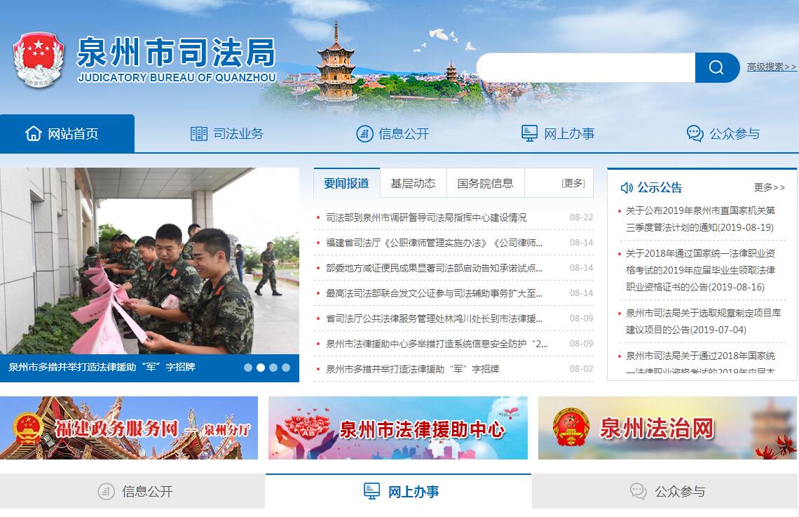 您當(dāng)前的位置:網(wǎng)站首頁 > 目錄主分類 > 社會(huì)教育 > 政府組織 > 地方政府網(wǎng)站 > 泉州市司法局