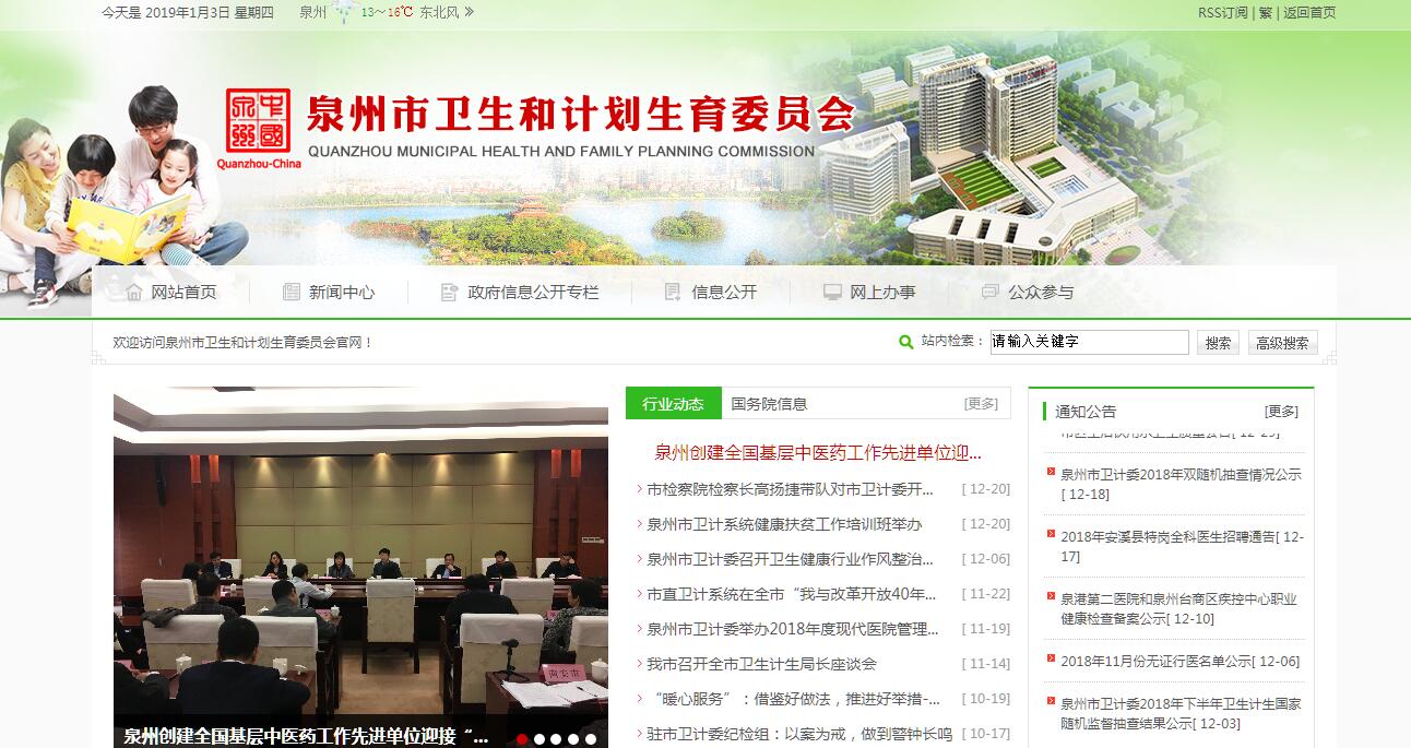 泉州市衛(wèi)生健康委員會是泉州市政府主管全市衛(wèi)生計生工作的工作部門。內(nèi)設機構:辦公室、規(guī)劃與信息科、財務科、衛(wèi)生應急辦公室(市突發(fā)公共衛(wèi)生事件應急指揮中心)、疾病控制科(衛(wèi)計綜合監(jiān)督科)、愛國衛(wèi)生運動委員會辦公室、醫(yī)政科(市藥品集中采購管理辦公室)、中醫(yī)藥科(科技教育科)、基層衛(wèi)生科與婦幼保健服務科、計劃生育基層指導科(宣傳科)、計劃生育家庭發(fā)展科(政策法規(guī)科)、流動人口計劃生育服務管理科、行政審核審批科、人事科、保健辦公室(市保健委員會辦公室)、系統(tǒng)黨委及其辦公室(衛(wèi)生產(chǎn)業(yè)工會)、衛(wèi)計委機關黨委。 其主要職責:(一)貫徹執(zhí)行國家、省有關衛(wèi)生、計劃生育和中醫(yī)藥的法律法規(guī)和方針政策,起草衛(wèi)生、計劃生育和中醫(yī)藥事業(yè)發(fā)展的政策、規(guī)劃,并負責組織實施;推進醫(yī)藥衛(wèi)生體制改革和醫(yī)療保障,統(tǒng)籌規(guī)劃與協(xié)調全市衛(wèi)生和計劃生育服務資源配置。(二)負責擬定并組織落實疾病預防控制規(guī)劃、免疫規(guī)劃、危害人民健康的公共衛(wèi)生問題的干預措施;擬訂衛(wèi)生應急和緊急醫(yī)學救援預案、突發(fā)公共衛(wèi)生事件監(jiān)測和風險評估計劃,組織和指導突發(fā)公共衛(wèi)生事件預防控制與應急處置;協(xié)調有關部門對重大疾病實施防控與干預;按規(guī)定發(fā)布突發(fā)公共衛(wèi)生事件應急處置信息。(三)負責擬訂和指導落實職責范圍內(nèi)的職業(yè)衛(wèi)生、放射衛(wèi)生、環(huán)境衛(wèi)生、學校衛(wèi)生、公共場所衛(wèi)生監(jiān)管政策措施和飲用水衛(wèi)生監(jiān)督政策措施,組織開展相關監(jiān)測、調查、評估;負責傳染病防治監(jiān)督工作;組織開展食品安全風險監(jiān)測、評估,負責食品安全企業(yè)標準備案。(四)負責擬訂并組織實施基層衛(wèi)生、婦幼衛(wèi)生和計劃生育服務發(fā)展規(guī)劃和政策措施;負責婦幼保健的綜合管理和監(jiān)督,依法管理計劃生育技術服務工作,組織指導基層衛(wèi)生、婦幼衛(wèi)生和計劃生育服務體系建設,推進基本公共衛(wèi)生和計劃生育服務均等化,完善基層運行新機制和鄉(xiāng)村醫(yī)生管理制度,完善合理分級診療模式。(五)負責醫(yī)療機構和醫(yī)療服務全行業(yè)監(jiān)督管理;擬訂并組織實施醫(yī)療機構及其醫(yī)療服務、醫(yī)療技術、醫(yī)療質量、醫(yī)療安全以及采供血機構管理的政策;組織實施全市醫(yī)療機構準入和評審評價工作,組織實施衛(wèi)生專業(yè)技術人員準入、資格標準、執(zhí)業(yè)規(guī)則和服務規(guī)范,建立醫(yī)療服務評價和監(jiān)督管理體系;依法規(guī)范醫(yī)療服務市場;指導平安醫(yī)院建設。(六)統(tǒng)籌推進醫(yī)療保障、醫(yī)療服務、公共衛(wèi)生、藥品供應、監(jiān)管體制綜合改革;負責指導基層醫(yī)療衛(wèi)生機構綜合改革,健全網(wǎng)絡化城鄉(xiāng)基層醫(yī)療衛(wèi)生服務運行機制;負責推進公立醫(yī)院改革,建立科學的醫(yī)療績效評價機制和適應行業(yè)特點的人才培養(yǎng)等制度;鼓勵和引導社會資本舉辦醫(yī)療機構;建設和諧醫(yī)患關系,執(zhí)行醫(yī)療服務和藥品價格政策。(七)貫徹落實國家藥物政策,組織實施國家藥物制度;依法建立完善計劃生育藥具管理制度。負責市藥品集中招標采購領導小組辦公室的日常工作。(八)貫徹中西醫(yī)并重的方針,完善中醫(yī)藥事業(yè)發(fā)展政策和機制,健全中醫(yī)藥服務和管理體系,扶持和促進中醫(yī)藥事業(yè)發(fā)展,擬定中醫(yī)藥中長期發(fā)展規(guī)劃;推進中醫(yī)藥醫(yī)療、保健、科研、教育、產(chǎn)業(yè)、文化“六位一體”全面發(fā)展。(九)負責組織推進所監(jiān)管的市屬公立醫(yī)院管理體制和運行機制改革,建立法人治理結構和現(xiàn)代醫(yī)院管理制度;按規(guī)定負責公立醫(yī)院國有資產(chǎn)監(jiān)管;組織指導所監(jiān)管的市屬公立醫(yī)院安全防范系統(tǒng)建設。(十)負責完善生育政策,組織實施促進出生人口性別平衡的政策措施,組織監(jiān)測計劃生育發(fā)展動態(tài),提出發(fā)布計劃生育安全預警預報信息建議;組織實施優(yōu)生優(yōu)育和提高出生人口素質的政策措施,推動實施生殖健康促進計劃,降低出生缺陷發(fā)生率。(十一)推動完善計劃生育利益導向、計劃生育特殊困難家庭扶助和促進計劃生育家庭發(fā)展等機制;負責協(xié)調推進有關部門、群眾團體履行計劃生育工作相關職責,建立計劃生育政策與經(jīng)濟社會發(fā)展政策的銜接機制,提出并推動落實穩(wěn)定低生育水平的政策措施。(十二)擬訂并組織落實流動人口計劃生育服務管理規(guī)劃,推動各地建立流動人口醫(yī)療衛(wèi)生、公共衛(wèi)生、計劃生育信息共享和公共服務工作機制。(十三)擬訂并指導實施衛(wèi)生和計劃生育人才發(fā)展規(guī)劃和政策,指導衛(wèi)生和計劃生育人才隊伍建設;加強全科醫(yī)生等急需緊缺專業(yè)人才培養(yǎng),完善并指導實施住院醫(yī)師和專科醫(yī)師規(guī)范化培訓制度。(十四)組織擬訂衛(wèi)生和計劃生育科技發(fā)展規(guī)劃,組織實施衛(wèi)生和計劃生育相關科
