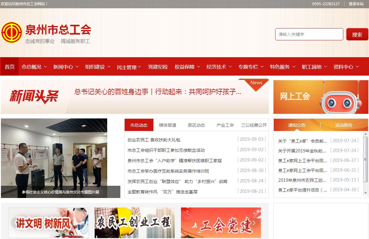 泉州市總工會是中共泉州市委和省總工會領(lǐng)導(dǎo)的全市職工自愿結(jié)合的工人階級群眾組織,是全市地方工會和產(chǎn)業(yè)工會的領(lǐng)導(dǎo)機關(guān),其主要職責是:(一)組織和指導(dǎo)名級工會貫徹落實黨和國家關(guān)于工人運動、工會工作的方針,政策,進步突出和履行工會的維護職責。(二)研究,制定全市工會工作計劃,組織實施上級工會的工作部署和全市工代會的各項決議。(三)參與涉及職工切身利益的地方性法律.法規(guī)和政策的研究。制定。(四)加強全市基層工會組織建設(shè),開展建設(shè)“職工之家”活動。(五)指導(dǎo)基層工會開展以職工代表大會為基本制度的民主決策、民主管理和民主監(jiān)督工作,研究和推動基層工會建立平等協(xié)商、集體合同 制度和監(jiān)督保證機制。(六)圍繞經(jīng)濟建設(shè)中心,組織和指導(dǎo)基層工會開展群眾性經(jīng)濟技術(shù)創(chuàng)新活動。(七)協(xié)助有關(guān)部]抓好機關(guān).企事業(yè)單位的勞動安全衛(wèi)生和社會保障工作。參與職工重大傷C事故的處理。依法維護女職工的特殊權(quán)益。(八)協(xié)調(diào)勞動關(guān)系,參與調(diào)節(jié)社會矛盾,推動勞動關(guān)系三方協(xié)商機制的建立和完善。(九)根據(jù)政府委托,與有關(guān)部共同做好勞動模范和先進生產(chǎn)(工作)者的評選、表彰、培養(yǎng)和管理工作。(十)宣傳黨的路線.方針.政策,加強職工學(xué)校.文化官、俱樂部建設(shè),開展職工政治思想。科學(xué)文化技術(shù)教育和文娛、體育活動,建設(shè)“四有”職工隊伍。(十一)搞好工會經(jīng)費的收.管、用,負責下級工會和市總工會直屬企事業(yè)單位的經(jīng)費審查和審計工作。(十二)圍繞黨和政府的中心工作以及工人運動,工會工作等重大課題,開展調(diào)查和研究。(十三)協(xié)助有關(guān)黨組織管理工會領(lǐng)導(dǎo)班子,抓好工會干部教育培訓(xùn),提高工會干部隊伍素質(zhì)。 (十四)負責全市工會國際聯(lián)絡(luò)工作,發(fā)展同各國工會的友好關(guān)系,開展與港,澳、臺地區(qū)工會的交流與合作。(十五)承擔市委、市政府及上級工會交辦的其他事項。