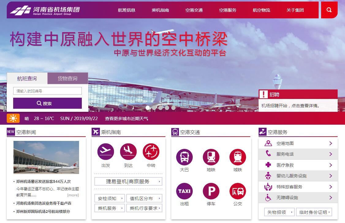 河南省機(jī)場集團(tuán)有限公司是河南省人民政府直屬的國有大型航空運(yùn)輸服務(wù)企業(yè),于2013年2月在河南省鄭州新鄭國際機(jī)場管理有限公司的基礎(chǔ)上組建而成。目前,機(jī)場集團(tuán)有5個(gè)直屬單位、下轄鄭州機(jī)場等17個(gè)子公司。鄭州機(jī)場是我國重要的干線機(jī)場、國家一類航空口岸。近年來,河南機(jī)場集團(tuán)緊緊圍繞構(gòu)建“國際航空貨運(yùn)樞紐和國內(nèi)大型航空樞紐”的目標(biāo),積極實(shí)施“貨運(yùn)為先、國際為先、以干為先”的“三為先”發(fā)展戰(zhàn)略,客貨運(yùn)輸取得了快速發(fā)展。截止2017年底,在鄭州機(jī)場運(yùn)營的貨運(yùn)航空公司達(dá)21家,開通貨運(yùn)航線34條,通航城市37個(gè),周航班量110班,年貨郵吞吐量突破50萬噸,基本形成了橫跨歐美亞三大經(jīng)濟(jì)區(qū)、覆蓋全球主要經(jīng)濟(jì)體的樞紐航線網(wǎng)絡(luò),成為中部地區(qū)融入“一帶一路“的重要開放門戶和引領(lǐng)中部、服務(wù)全國、輻射全球的空中經(jīng)濟(jì)廊道。國內(nèi)外客運(yùn)航空公司達(dá)54家,開通航線194條,通航城市112個(gè),年旅客吞吐量達(dá)到2430萬人次?;拘纬闪烁采w全國及東亞、東南亞主要城市,聯(lián)通澳洲、美洲的航線網(wǎng)絡(luò)。