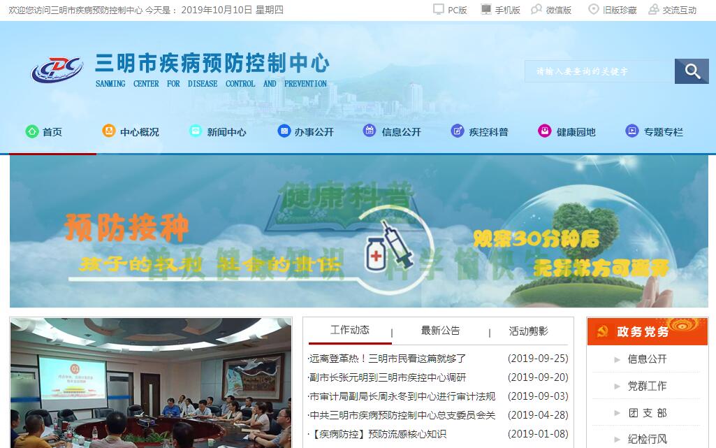| 網(wǎng)站名稱: | 三明市疾病預(yù)防控制中心 | ||