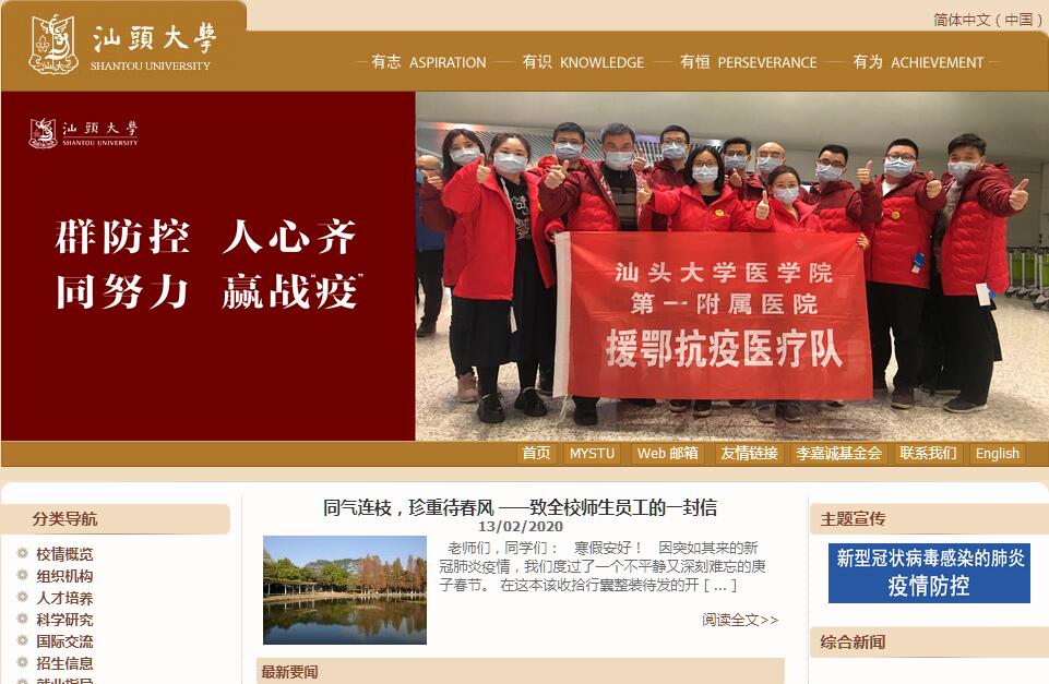 汕頭大學是1981年經國務院批準成立的綜合性大學,學校得到著名愛國人士及國際知名企業(yè)家李嘉誠先生的鼎力相助,李嘉誠基金會對汕頭大學的支持款超過100億港元。目前汕頭大學是教育部、廣東省、李嘉誠基金會三方共建的高等院校,也是全球唯一一所由私人基金會——李嘉誠基金會持續(xù)資助的公立大學。學校是廣東省愛國主義教育基地,學校占地面積1888.70畝,建筑面積56.80萬平方米(含體育館、醫(yī)學院、住宿學院等項目)。汕頭大學設有文學院、理學院、工學院、醫(yī)學院、法學院、商學院、長江藝術與設計學院、長江新聞與傳播學院,面向全國(含港澳臺地區(qū))招收博士、碩士和本科生。現(xiàn)有教職工1602人,全日制在校生10294人,已為社會培養(yǎng)出各類人才10萬人。汕大有國家重點學科1個,設置了“長江學者”特聘教授崗位,博士后科研流動站5個,一級學科博士學位授權點1個、一級學科碩士學位授權點10個、含一級學科點覆蓋數(shù),我校共有二級學科博士學位授權點25個、二級學科碩士學位授權點83個。碩士專業(yè)學位授權點8個。廣東省重點學科8個(其中攀峰重點學科1個:基礎數(shù)學;優(yōu)勢重點學科4個:化學、機械設計及理論、臨床醫(yī)學、基礎醫(yī)學;特色重點學科3個:海洋生物學、生物化學與分子生物學、藥理學),教育部重點實驗室1個,廣東省重點實驗室6個,廣東省國際科技合作基地3個,廣東省高校重點實驗室3個,廣東省衛(wèi)生廳重點實驗室3個,廣東省重點產業(yè)科技創(chuàng)新平臺1個,廣東省工程技術研究中心5個,廣東省高校產學研結合示范基地4個、廣東省高校工程技術研究中心3個,廣東高校國際暨港澳臺合作創(chuàng)新平臺6個,廣東省高校人文社會科學重點研究基地2個,教育部(國家級)實驗教學示范中心1個,廣東省實驗教學示范中心15個,教育部2007年度人才培養(yǎng)模式創(chuàng)新實驗區(qū)2個,省級人才培養(yǎng)模式創(chuàng)新實驗區(qū)10個,國家級特色專業(yè)建設點7個(工商管理、藝術設計、法學、臨床醫(yī)學、機械設計制造及其自動化、土木工程、廣播電視新聞學),省級特色專業(yè)建設點11個,教育部(國家級)精品課程4門,教育部(國家級)雙語教學示范課程2門,教育部(國家級)教學團隊1個,廣東省名牌專業(yè)4個(電子信息工程、計算機科學與技術、臨床醫(yī)學、工商管理),廣東省重點專業(yè)2個(臨床醫(yī)學、土木工程),開設七年制本碩連讀臨床醫(yī)學專業(yè),形成了從本科生到博士研究生完整的人才培養(yǎng)體系。學校已建成一批既能開展基礎科學研究又能直接為地方經濟建設服務的科研機構,主要有國家教育部智能制造技術重點實驗室、分子腫瘤學國家重點實驗室分室、海洋生物技術重點實驗室、數(shù)字信號與圖像處理技術重點實驗室、感染病與分子免疫病理重點實驗室、結構與風洞重點實驗室、地方政府發(fā)展研究所、粵臺企業(yè)合作研究院等。圖書館全面實行電腦化管理,并致力于建設現(xiàn)代化的數(shù)字圖書館?,F(xiàn)有圖書157.59萬冊,數(shù)字資源量達1442254GB,其中電子圖書46091GB。學校校園網(wǎng)始建于1990年,經過211工程建設的專項投入,目前校園網(wǎng)已延伸到校內每一棟建筑物,學生可以從宿舍直接上互聯(lián)網(wǎng)。醫(yī)學院有五所附屬醫(yī)院和3所托管醫(yī)院,有5523張病床,其中第一附屬醫(yī)院榮膺“全國百佳醫(yī)院”和“三級甲等”醫(yī)院,為醫(yī)學生提供良好的醫(yī)療實踐機會。全校教學科研實驗設備居國內高校的先進水平。在李嘉誠基金會的支持下,學校積極擴展學術交流和合作,國際化辦學水平得到迅速提升。學校目前已與英國、美國、加拿大、愛爾蘭等16個國家和地區(qū)56所高校建立了密切的學術交流合作關系,制訂并實施了本科生、研究生交流計劃。2016年12月,由汕頭大學和以色列理工學院合作創(chuàng)辦的廣東以色列理工學院(GTIIT)獲教育部批準正式設立。學校圍繞“有志、有識、有恒、有為”的育人目標,堅持以學生為本,進行大學管理體制的改革和人才培養(yǎng)模式的創(chuàng)新,并計劃在全新興建的醫(yī)學院開展最前瞻的生命科學教學課程。2001年起,在李嘉誠基金會的支持下,學校全面啟動以國際化為導向的改革工程,聘期外籍人士擔任執(zhí)行校長、院長等職務,在課程、教學、資源管理及人事制度等方面進行具典范意義的全方位教育改革探索,諸多改革經驗已得到國家的肯定、支持和推廣,被李嵐清同志高度評價為“中國高校改革的試驗田”。2009年起,汕頭大學以構建先進本科教育體系為核心,積極探索創(chuàng)新國際化、精細化的本科人才培養(yǎng)模式,推進自主辦學綜合改革試點進程。2012年,教育部、廣東省、李嘉誠基金會決定三方共建汕頭大學,支持汕頭大學繼續(xù)深化改革,建設成一所國內先進、國際知名的高水平大學。2015年,汕大開展“四院兩部”大部制改革,重組校內黨政職能部門,積極探索構建以服務為核心理念、機構功能集成、機制運行高效的學校管理體制和運行機制。汕大人不負中央、省、市各級領導和李嘉誠先生所望,經過三十多年的努力,營造了一個培養(yǎng)高質量創(chuàng)新人才的良好環(huán)境,奠定了持續(xù)發(fā)展的良好基礎,汕頭大學將致力建設成具備現(xiàn)代大學的