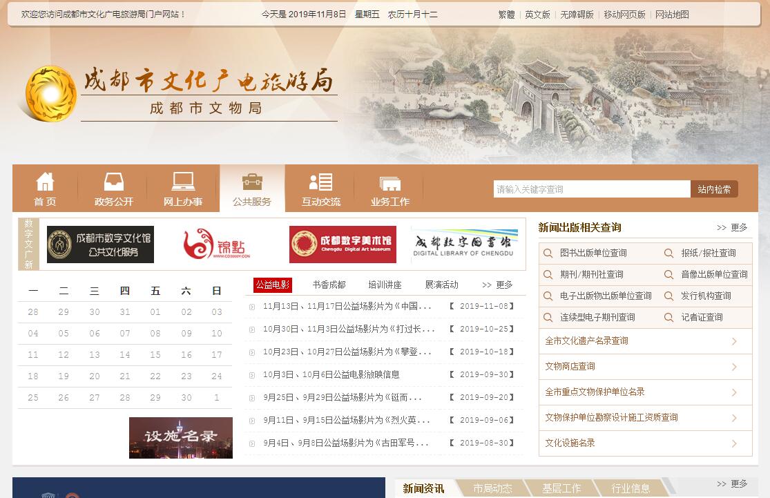 成都市文化廣電旅游局主要職責(zé):(一) 貫徹落實國家和省、市關(guān)于文化廣電旅游工作的法律法規(guī)規(guī)章,擬訂全市文化廣電旅游政策措施,起草文化廣電旅游地方性法規(guī)規(guī)章草案。(二) 統(tǒng)籌規(guī)劃全市文化廣電旅游事業(yè),擬訂發(fā)展規(guī)劃并組織實施,推進(jìn)文化廣電旅游體制機制改革,推進(jìn)文化廣電旅游融合發(fā)展。(三) 管理全市重大文化廣電旅游活動制定文化廣電旅游市場開發(fā)戰(zhàn)略并組織實施,組織旅游整體形象推廣;促進(jìn)文化廣電旅游對外合作及國際市場推廣,推進(jìn)全域旅游;指導(dǎo)重點文化廣電旅游設(shè)施建設(shè)。(四) 指導(dǎo)、管理文藝事業(yè);指導(dǎo)全市藝術(shù)創(chuàng)作生產(chǎn),扶持體現(xiàn)社會主義核心價值觀、具有導(dǎo)向性代表性示范性的文藝作品,推動各門類藝術(shù)發(fā)展,推動中華優(yōu)秀傳統(tǒng)文化和天府文化傳承發(fā)展;指導(dǎo)文化藝術(shù)行業(yè)職業(yè)教育。(五) 負(fù)責(zé)公共文化事業(yè)發(fā)展;推動全市文化廣電旅游公共服務(wù)體系建設(shè),實施文化廣電旅游惠民工程,推進(jìn)基本公共服務(wù)標(biāo)準(zhǔn)化、均等化。(六) 指導(dǎo)、推進(jìn)全市文化廣電旅游科技創(chuàng)新發(fā)展,推進(jìn)文化廣電旅游行業(yè)信息化、標(biāo)準(zhǔn)化建設(shè)。(七) 指導(dǎo)、管理文物和博物館事業(yè);組織開展文物資源調(diào)查、保護(hù)利用和文物安全監(jiān)管工作,參與查處文物違法犯罪案件;推動博物館公共服務(wù)體系建設(shè)。(八) 負(fù)責(zé)非物質(zhì)文化遺產(chǎn)保護(hù),推動非物質(zhì)文化遺產(chǎn)保護(hù)、傳承、弘揚和振興。(九) 監(jiān)督管理全市廣播電視機構(gòu)和節(jié)目;負(fù)貴廣播電視節(jié)目評價工作;監(jiān)督管理網(wǎng)絡(luò)視聽節(jié)目服務(wù)機構(gòu)和節(jié)目;指導(dǎo)、監(jiān)管廣播電視廣告播放;加強廣播電視陣地建設(shè),把握正確的輿論導(dǎo)向和創(chuàng)作方向。(十) 監(jiān)督管理廣播電視節(jié)目的傳輸覆蓋、監(jiān)測和安全播出,推進(jìn)應(yīng)急廣播體系建設(shè);推進(jìn)廣播電視與新媒體新技術(shù)新業(yè)態(tài)融合發(fā)展,推進(jìn)廣電網(wǎng)與電信網(wǎng)、互聯(lián)網(wǎng)三網(wǎng)融合。(十一) 促進(jìn)文化廣電旅游產(chǎn)業(yè)發(fā)展,組織實施全市文化廣電旅游資源普查、挖掘、保護(hù)和利用工作。(十二) 指導(dǎo)監(jiān)督和規(guī)范全市文化廣電旅游市場,推進(jìn)文化廣電旅游行業(yè)信用體系建設(shè)。(十三) 指導(dǎo)文化旅游市場綜合執(zhí)法,組織查處全市性、跨區(qū)域文化、文物、廣電、旅游市場的違法行為,督查督辦大案要案,維護(hù)市場秩序。(十四) 指導(dǎo)、管理全市文化廣電旅游對外及對港澳臺交流、合作和宣傳、推廣工作。(十五) 負(fù)責(zé)文化廣電旅游系統(tǒng)及行業(yè)安全生產(chǎn)工作的綜合協(xié)調(diào),監(jiān)督管理文化廣電旅游的安全生產(chǎn)和職業(yè)健康工作。(十六) 負(fù)責(zé)職責(zé)范圍內(nèi)的生態(tài)環(huán)境保護(hù)、人才隊伍建設(shè)、審批服務(wù)便民化等工作。(十七) 完成市委和市政府交辦的其他任務(wù)。