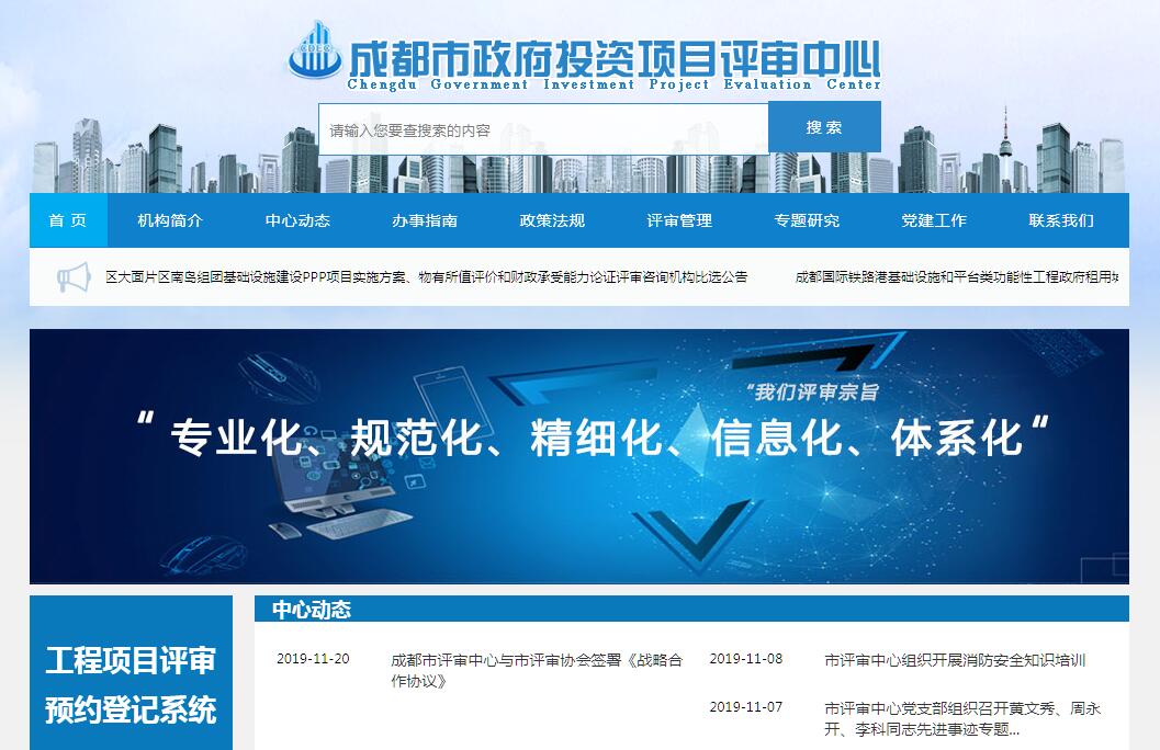 2007年9月,成都市人民政府第119次常務會議決定成立成都市政府投資項目評審中心。2008年1月,成都市機構(gòu)編制委員會正式批準成立成都市政府投資項目評審中心(成機編〔2008〕1號)。2011年12月,經(jīng)四川省人力資源和社會保障廳批準,成都市評審中心正式列為參照公務員法管理單位,上級主管部門為成都市發(fā)展和改革委員會,核定人員編制12名。成都市政府投資項目評審中心的主要職責是:負責市政府投資項目的項目方案、可行性研究報告的評審論證;負責市政府投資項目的投資概算審查和招標預算控制價評審;負責市政府投資項目后評價;參與市政府制定投資項目管理有關政策、法規(guī)的研究。成都市政府投資項目評審中心職工大部分具有中高級技術職稱,同時擁有注冊咨詢工程師(投資)、注冊造價工程師、注冊資產(chǎn)評估師、注冊監(jiān)理工程師、項目管理師等多種職業(yè)資格。成都市政府投資項目評審中心自成立以來,一直緊緊圍繞市委、市政府的戰(zhàn)略決策和部署,按照市發(fā)改委對政府投資項目評審工作的要求,以提高評審質(zhì)量和效率為核心,積極開展工作,有效發(fā)揮了投資控制和決策咨詢作用。