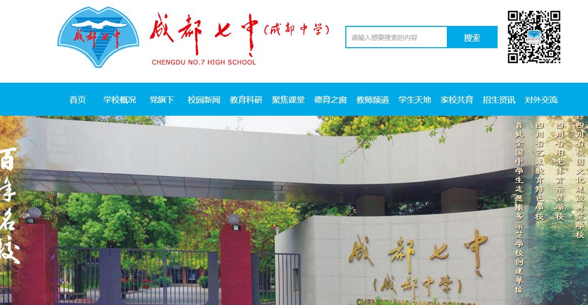 成都市第七中學(xué)(Chengdu NO.7 High School),簡(jiǎn)稱成都七中(成都中學(xué)),是國(guó)家級(jí)示范性普通高中、中國(guó)4所“國(guó)家級(jí)示范性普通高中樣板學(xué)校”之一。學(xué)校源于1905年4月12日創(chuàng)建的成都高等小學(xué)堂;1952年11月,更為成都市第七中學(xué);1986年,首批被四川省教育廳確定為省級(jí)重點(diǎn)中學(xué);1986年,被確定為教育部在四川的定點(diǎn)聯(lián)系學(xué)校;2000年,首批被四川省教育廳評(píng)定為國(guó)家級(jí)示范性普通高中,被教育部確定為全國(guó)四所國(guó)家級(jí)示范性高中建設(shè)項(xiàng)目樣板學(xué)校之一;2013年12月23日,四川省教育廳正式批準(zhǔn)成都七中成為“四川省一級(jí)示范性普通高中”;2014年10月16日,加掛成都中學(xué)校名。截至2014年6月,學(xué)校設(shè)有林蔭、高新2個(gè)校區(qū);開辦15個(gè)教學(xué)班,有學(xué)生753人,有教職工205人。