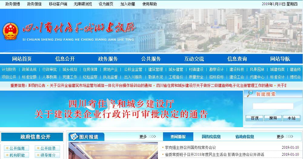 您當(dāng)前的位置:網(wǎng)站首頁(yè) > 目錄主分類(lèi) > 社會(huì)教育 > 政府組織 > 地方政府網(wǎng)站 > 四川省住房和城鄉(xiāng)建設(shè)廳