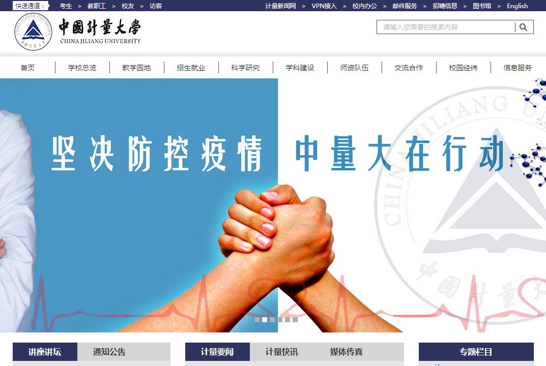 中國計量大學(xué)是我國計量、標(biāo)準(zhǔn)、質(zhì)量和檢驗檢疫領(lǐng)域唯一的本科院校。學(xué)校前身是1978年由國家計量總局創(chuàng)建的杭州計量學(xué)校,1985年經(jīng)教育部批準(zhǔn)升格為中國計量學(xué)院,2016年更名為中國計量大學(xué),2017年成為省部共建大學(xué)。學(xué)校坐落于浙江省杭州市,校園環(huán)境優(yōu)美,辦學(xué)條件優(yōu)越,擁有教學(xué)科研儀器設(shè)備總值4.6億元,紙質(zhì)圖書230萬冊?,F(xiàn)有52個本科專業(yè),涵蓋工學(xué)、理學(xué)、管理學(xué)、法學(xué)、文學(xué)、經(jīng)濟學(xué)、醫(yī)藥學(xué)、農(nóng)學(xué)、藝術(shù)學(xué)等九大學(xué)科門類,有碩士學(xué)位授權(quán)一級學(xué)科15個、碩士專業(yè)學(xué)位授權(quán)點10個。設(shè)有18個學(xué)院(部),創(chuàng)辦1所獨立學(xué)院,有在校全日制普通本科生15121人、研究生1653人,獨立學(xué)院5613人。學(xué)校現(xiàn)有專任教師1300余人,其中具有高級職稱教師694人,具有研究生學(xué)位教師占90.3%。有共享中國工程院院士2人,國家“千人計劃”2人,國家“萬人計劃”2人,國家杰出青年科學(xué)基金獲得者1人,國家百千萬人才3人,教育部跨(新)世紀(jì)優(yōu)秀人才3人,浙江省特級專家3人,浙江省“千人計劃”6人,浙江省特聘教授6人,浙江省教學(xué)名師6人。擁有國家級教學(xué)團隊1個、浙江省高校教學(xué)團隊5個,浙江省重點科技創(chuàng)新團隊5個。學(xué)?,F(xiàn)有國家質(zhì)檢中心、國家質(zhì)檢總局重點實驗室、國家國際科技合作基地、教育部工程研究中心、國家地方聯(lián)合工程實驗室、浙江省重點實驗室、浙江省工程實驗室等省部級以上科研平臺25個,大學(xué)科技園被科技部、教育部認定為國家大學(xué)科技園、國家級科技企業(yè)孵化器、國家級眾創(chuàng)空間、高校學(xué)生科技創(chuàng)業(yè)實習(xí)基地。建有國家知識產(chǎn)權(quán)培訓(xùn)(浙江)基地、中國認證認可協(xié)會教育培訓(xùn)基地、國家標(biāo)準(zhǔn)化管理委員會國際標(biāo)準(zhǔn)化人才培訓(xùn)基地、ISO國際標(biāo)準(zhǔn)化培訓(xùn)基地(杭州)等代表國際國家級水平的質(zhì)檢人才培養(yǎng)基地。工程學(xué)學(xué)科、化學(xué)學(xué)科進入ESI全球排名前1%行列,擁有浙江省2011協(xié)同創(chuàng)新中心3個,浙江省一流學(xué)科10個,浙江省重中之重學(xué)科、人文社科重點研究基地和重點學(xué)科11個。學(xué)校發(fā)揮行業(yè)辦學(xué)優(yōu)勢,服務(wù)創(chuàng)新驅(qū)動戰(zhàn)略,全面深入推進與地方政府、質(zhì)檢機構(gòu)和行業(yè)企業(yè)的政產(chǎn)學(xué)研合作,獲國家科學(xué)技術(shù)獎二等獎2項,高等學(xué)??茖W(xué)研究優(yōu)秀成果獎、國家質(zhì)檢總局科技興檢獎、浙江省科學(xué)技術(shù)獎、浙江省哲學(xué)社會科學(xué)優(yōu)秀成果獎等省部級獎勵60余項,近五年主持承擔(dān)國家級、省部級項目770余項,發(fā)表三大檢索收錄論文2500余篇,獲授權(quán)發(fā)明專利1100余項,主持或參與制修訂標(biāo)準(zhǔn)50余項。學(xué)校秉承“精思國計、細量民生”的校訓(xùn),堅持“計量立校、標(biāo)準(zhǔn)立人、質(zhì)量立業(yè)”的辦學(xué)理念,落實立德樹人根本任務(wù),以培養(yǎng)適應(yīng)國家質(zhì)量事業(yè)發(fā)展需要的高素質(zhì)人才為目標(biāo),以提高質(zhì)量為核心,不斷深化教育教學(xué)改革,擁有國家級特色專業(yè)4個,國家專業(yè)綜合改革試點專業(yè)2個,浙江省優(yōu)勢、特色專業(yè)20個,通過全國工程教育認證專業(yè)5個,入選教育部“卓越工程師教育培養(yǎng)計劃”專業(yè)5個;國家級精品課程、國家精品資源共享課、國家級雙語教學(xué)示范課程等7門,省級精品課程22門、精品在線開放課程4門;國家級實驗教學(xué)示范中心和虛擬仿真實驗教學(xué)中心2個,省級實驗教學(xué)示范中心10個;國家級、省級大學(xué)生校外實踐教育基地3個,國家級人才培養(yǎng)模式創(chuàng)新實驗區(qū)1個, “全國示范性工程專業(yè)學(xué)位研究生聯(lián)合培養(yǎng)基地”1個。在近兩屆教學(xué)成果評選中獲國家級、省級教學(xué)成果獎20項,獲得全球首屆“ISO標(biāo)準(zhǔn)化高等教育獎”。2007年獲教育部本科教學(xué)工作水平評估優(yōu)秀,2014年在浙江省屬高校本科教學(xué)業(yè)績考核中排名第五;2016年通過教育部本科教學(xué)工作審核評估,在2017年浙江省普通本科高校分類評價中排名多科性、教學(xué)研究型高校第一。學(xué)校全面落實“實踐育人”,重視培養(yǎng)學(xué)生的責(zé)任意識、創(chuàng)新精神和實踐能力。近五年本科生在各類學(xué)科競賽中獲國家獎333項、省獎2013項,其中“挑戰(zhàn)杯”全國一等獎2項;數(shù)學(xué)建模競賽全國一等獎20項,總成績連續(xù)五年排名全省高校第一,2015年排名全國所有參賽高校第二、2017年排名全國所有參賽高校第三;在2013-2017年全國高校學(xué)科競賽評估中排名63位,其中2017年全國高校學(xué)科競賽評估排名第45位、浙江省第4位。以獨立發(fā)明人申請并獲授權(quán)各類專利3000余項,其中發(fā)明專利49項。校園文藝活動獲全國大學(xué)生藝術(shù)展演一等獎4項、省級一等獎23項。面向全國31個省、市、自治區(qū)及港