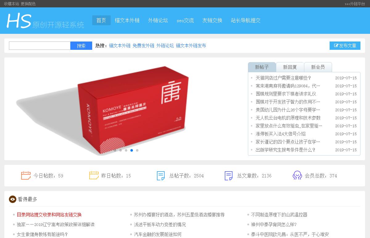 | 網(wǎng)站簡介: 熊掌seo外鏈網(wǎng)Seo-link是一個(gè)高質(zhì)量軟文外鏈論壇,可以免費(fèi)發(fā)外鏈的網(wǎng)站,可帶錨文本外鏈。作用:吸引蜘蛛、加速快照更新、做網(wǎng)站反鏈,提升網(wǎng)站排名速度適用人群:個(gè)人站長,推廣人員,外鏈專員。 |