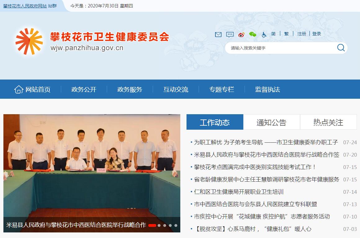 攀枝花市衛(wèi)生健康委員會主要職責(zé):(一)組織擬訂全市衛(wèi)生健康政策。負(fù)責(zé)擬訂衛(wèi)生健康事業(yè)發(fā)展政策、規(guī)劃并組織實(shí)施。統(tǒng)籌規(guī)劃全市衛(wèi)生健康資源配置。制定并組織實(shí)施推進(jìn)衛(wèi)生健康基本公共服務(wù)均等化、普惠化、便捷化和公共資源向基層延伸等政策措施。(二)牽頭推進(jìn)全市深化醫(yī)藥衛(wèi)生體制改革。研究提出深化改革重大政策、措施的建議。組織深化公立醫(yī)院綜合改革,建立健全現(xiàn)代醫(yī)院管理制度。制定并組織實(shí)施推動衛(wèi)生健康公共服務(wù)提供主體多元化、提供方式多樣化的政策措施。(三)制定并組織落實(shí)全市疾病預(yù)防控制規(guī)劃、免疫規(guī)劃以及嚴(yán)重危害人民健康的艾滋病等重大傳染病、寄生蟲病、地方病等公共衛(wèi)生問題的干預(yù)措施。負(fù)責(zé)全市衛(wèi)生應(yīng)急工作,組織和指導(dǎo)全市突發(fā)公共衛(wèi)生事件預(yù)防控制和各類突發(fā)公共事件的醫(yī)療衛(wèi)生救援。收集、報告法定傳染病疫情信息、突發(fā)公共衛(wèi)生事件應(yīng)急處置信息。依照國家檢疫傳染病和監(jiān)測傳染病目錄,參與開展檢疫監(jiān)測工作。(四)貫徹落實(shí)國家應(yīng)對人口老齡化政策措施。負(fù)責(zé)推進(jìn)老年健康服務(wù)體系建設(shè)和醫(yī)養(yǎng)結(jié)合工作。承擔(dān)市老齡工作委員會日常工作。(五)貫徹落實(shí)國家藥物政策和國家基本藥物制度。開展藥械使用監(jiān)測、臨床綜合評價和短缺藥品預(yù)警,組織執(zhí)行國家藥典和國家基本藥物目錄,制定基本藥物使用的政策措施。(六)組織實(shí)施食品安全風(fēng)險監(jiān)測,開展食品安全企業(yè)標(biāo)準(zhǔn)備案,組織開展食品安全事故流行病學(xué)調(diào)查。(七)負(fù)責(zé)職責(zé)范圍內(nèi)的職業(yè)衛(wèi)生、放射衛(wèi)生、環(huán)境衛(wèi)生、學(xué)校衛(wèi)生、公共場所衛(wèi)生、飲用水衛(wèi)生等公共衛(wèi)生的監(jiān)督管理。負(fù)責(zé)傳染病防治監(jiān)督,健全衛(wèi)生健康綜合監(jiān)管體系。(八)制定全市醫(yī)療機(jī)構(gòu)、醫(yī)療服務(wù)行業(yè)管理辦法并監(jiān)督實(shí)施,建立醫(yī)療服務(wù)評價和監(jiān)督管理體系。會同有關(guān)部門實(shí)施衛(wèi)生健康專業(yè)技術(shù)人員資格標(biāo)準(zhǔn)。制定并組織實(shí)施醫(yī)療服務(wù)規(guī)范、標(biāo)準(zhǔn)和衛(wèi)生健康專業(yè)技術(shù)人員執(zhí)業(yè)規(guī)則、服務(wù)規(guī)范。負(fù)責(zé)醫(yī)療機(jī)構(gòu)、人員和行為的日常監(jiān)管。(九)制定全市中醫(yī)藥中長期發(fā)展規(guī)劃,并納入衛(wèi)生健康事業(yè)發(fā)展總體規(guī)劃和戰(zhàn)略目標(biāo)予以組織實(shí)施。(十)負(fù)責(zé)全市計劃生育管理和服務(wù)工作,開展人口監(jiān)測預(yù)警,研究提出人口與家庭發(fā)展相關(guān)政策建議,執(zhí)行計劃生育政策。指導(dǎo)市計劃生育協(xié)會的業(yè)務(wù)工作。(十一)指導(dǎo)縣(區(qū))衛(wèi)生健康工作。指導(dǎo)基層醫(yī)療衛(wèi)生、婦幼健康服務(wù)體系和基層衛(wèi)生隊(duì)伍建設(shè)。推進(jìn)衛(wèi)生健康科技創(chuàng)新發(fā)展。(十二)負(fù)責(zé)市確定的保健對象的醫(yī)療保健工作,負(fù)責(zé)市級有關(guān)部門(單位)離休干部醫(yī)療管理工作。負(fù)責(zé)重要會議與重大活動的醫(yī)療衛(wèi)生保障工作。(十三)依法依規(guī)履行衛(wèi)生健康行業(yè)安全生產(chǎn)監(jiān)管職責(zé),負(fù)責(zé)職責(zé)范圍內(nèi)的生態(tài)環(huán)境保護(hù)、審批服務(wù)便民化等工作。(十四)完成市委、市政府交辦的其他任務(wù)。