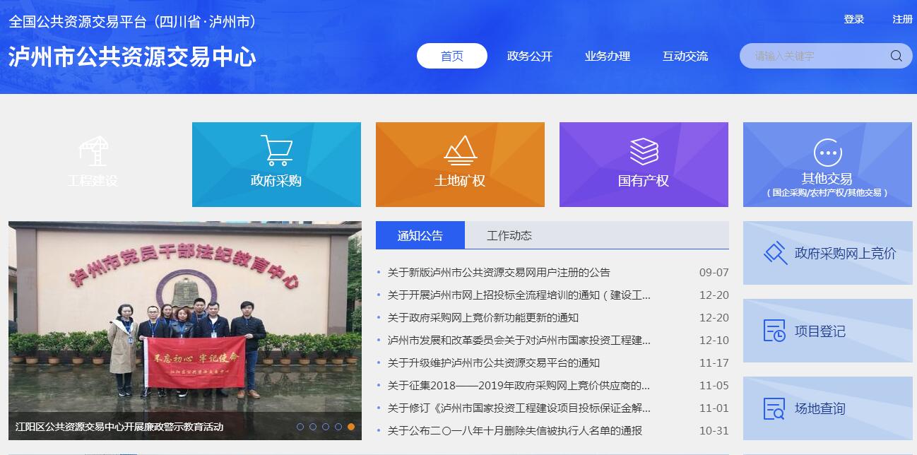 瀘州市公共資源交易中心成立于2012年12月20日,為市政府政務(wù)服務(wù)中心下屬財政全額撥款事業(yè)單位。座落于江陽古城龍透關(guān)隘——瀘州市江陽區(qū)酒城大道一段二號?,F(xiàn)有交易場地3000㎡。是市委、市政府打造交易監(jiān)管集約化、配置市場化、運(yùn)作陽光化,從源頭上預(yù)防和治理腐敗,實(shí)現(xiàn)公開公平公正交易的場所。主要職責(zé)是:根據(jù)公共資源交易服務(wù)相關(guān)法律、法規(guī)和政策,在市政府政務(wù)服務(wù)中心領(lǐng)導(dǎo)下,為公共資源交易活動提供場所、設(shè)施和服務(wù)。中心核定事業(yè)編制19名,其中主任1名(副縣級)、副主任2名(正科級)。內(nèi)設(shè)機(jī)構(gòu)5個,分別是:綜合科、交易受理科、交易組織科、現(xiàn)場監(jiān)督科、財務(wù)科,內(nèi)設(shè)副科級領(lǐng)導(dǎo)職數(shù)5名。服務(wù)理念是:樹立一個目標(biāo)(公正)、實(shí)施兩個辦法(公開、公平)、堅守三個服務(wù)(為法律法規(guī)服務(wù)、為公平正義服務(wù)、為招標(biāo)投標(biāo)服務(wù))、實(shí)現(xiàn)四個滿意(招標(biāo)采購人滿意、主管監(jiān)管部門滿意、招標(biāo)供應(yīng)商滿意、社會各界滿意),為全市國家投資工程建設(shè)項(xiàng)目招標(biāo)投標(biāo)、土地使用權(quán)和礦業(yè)權(quán)出讓、國有產(chǎn)權(quán)交易、政府采購活動提供了良好的服務(wù)。